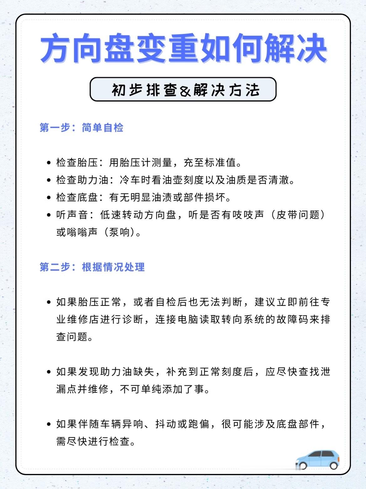 方向盘变重别慌!新手秒会的自检步骤✅