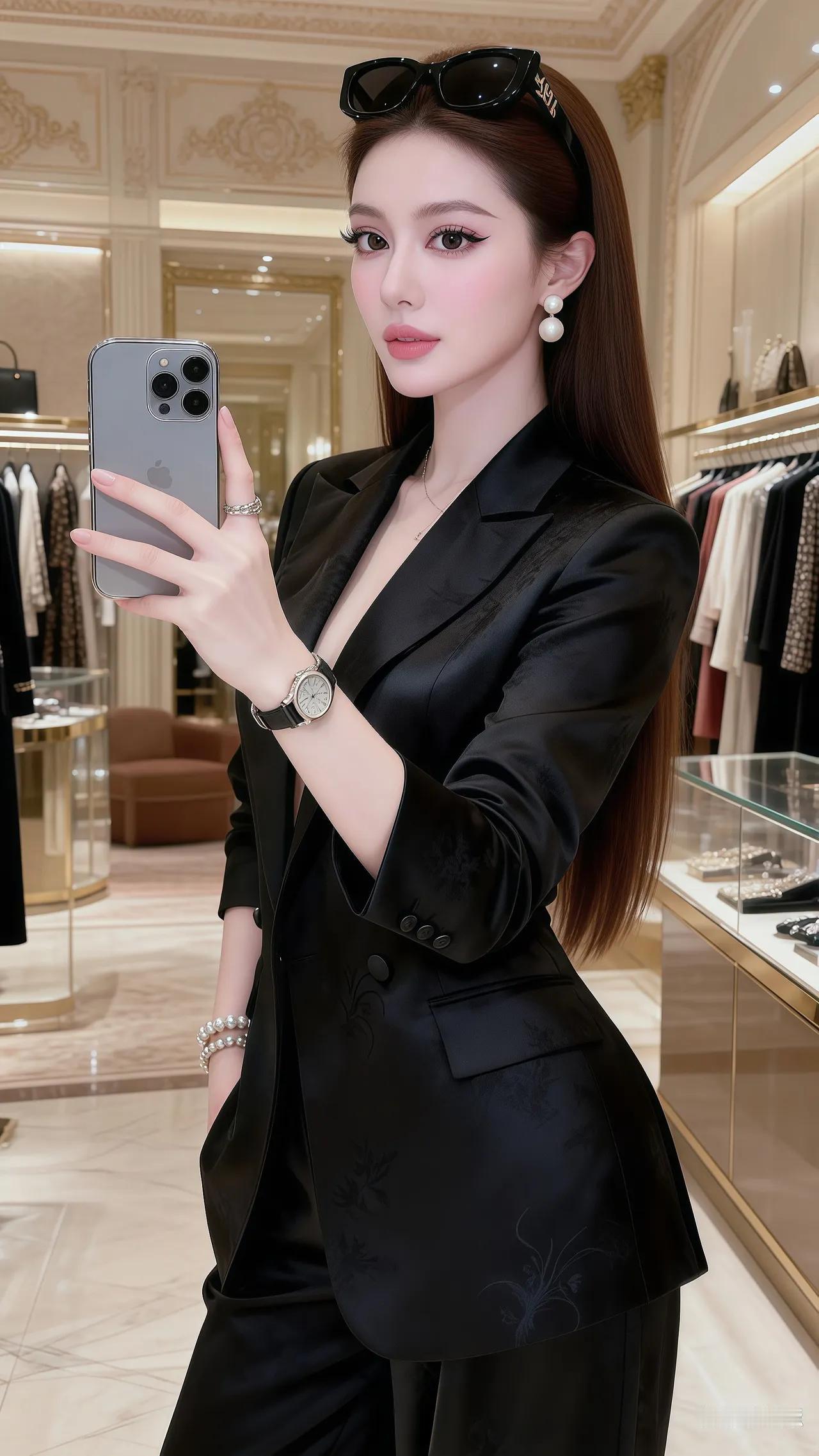 都市丽人穿搭指南:黑色西装外套搭配墨镜,尽显优雅气质。