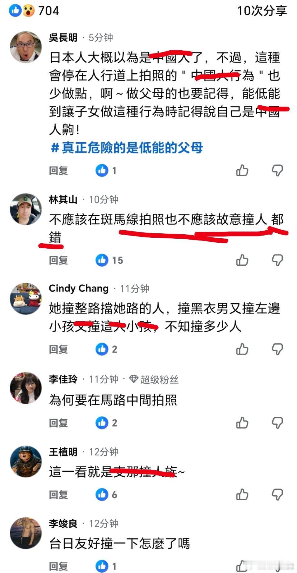 台湾女孩疑在日本街头被恶意撞倒台湾 二立:日網耶怒啦!蛙苠:不应该在斑马线上拍照!思反……