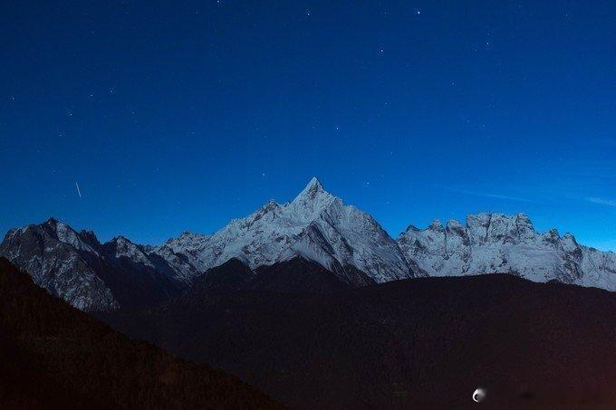 梅里雪山,又名卡瓦格博,位于西藏与云南交界处,耸立于澜沧江与怒江 之间,是一座南