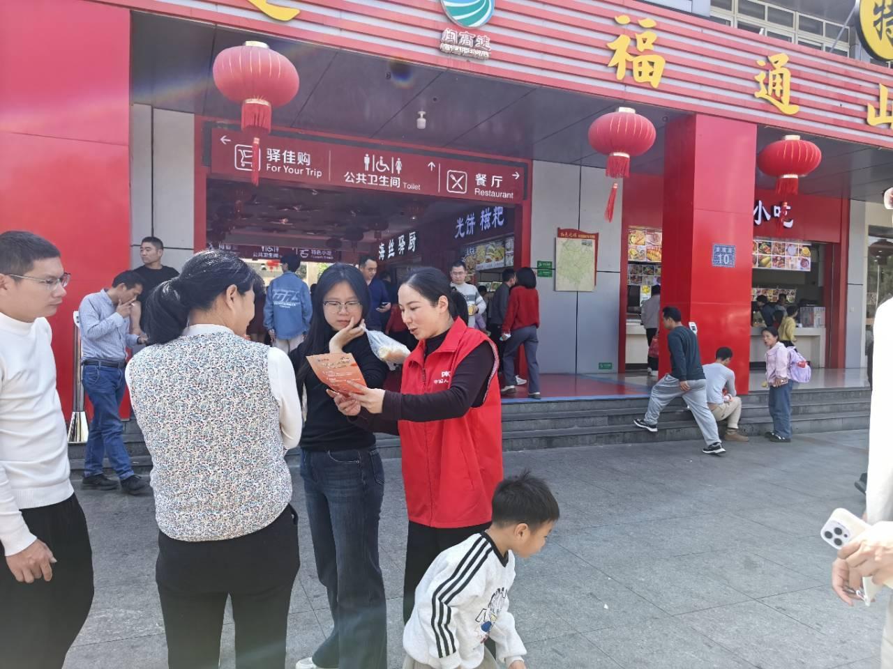 志愿者们主动为过往司乘人员免费提供热茶、行车指南和应急药品,结合自身专业优势,同步开展金融安全与保险知识宣传活动。他们向过往群众发放宣传资料,用通俗易懂的语言普及反洗钱、防范非法集资等金融安全知识,细致讲解公众责任险等相关险种的保障范围、理赔流程及核心作用,引导群众提高风险防范意识和自我保护能力,筑牢金融安全思想防线。