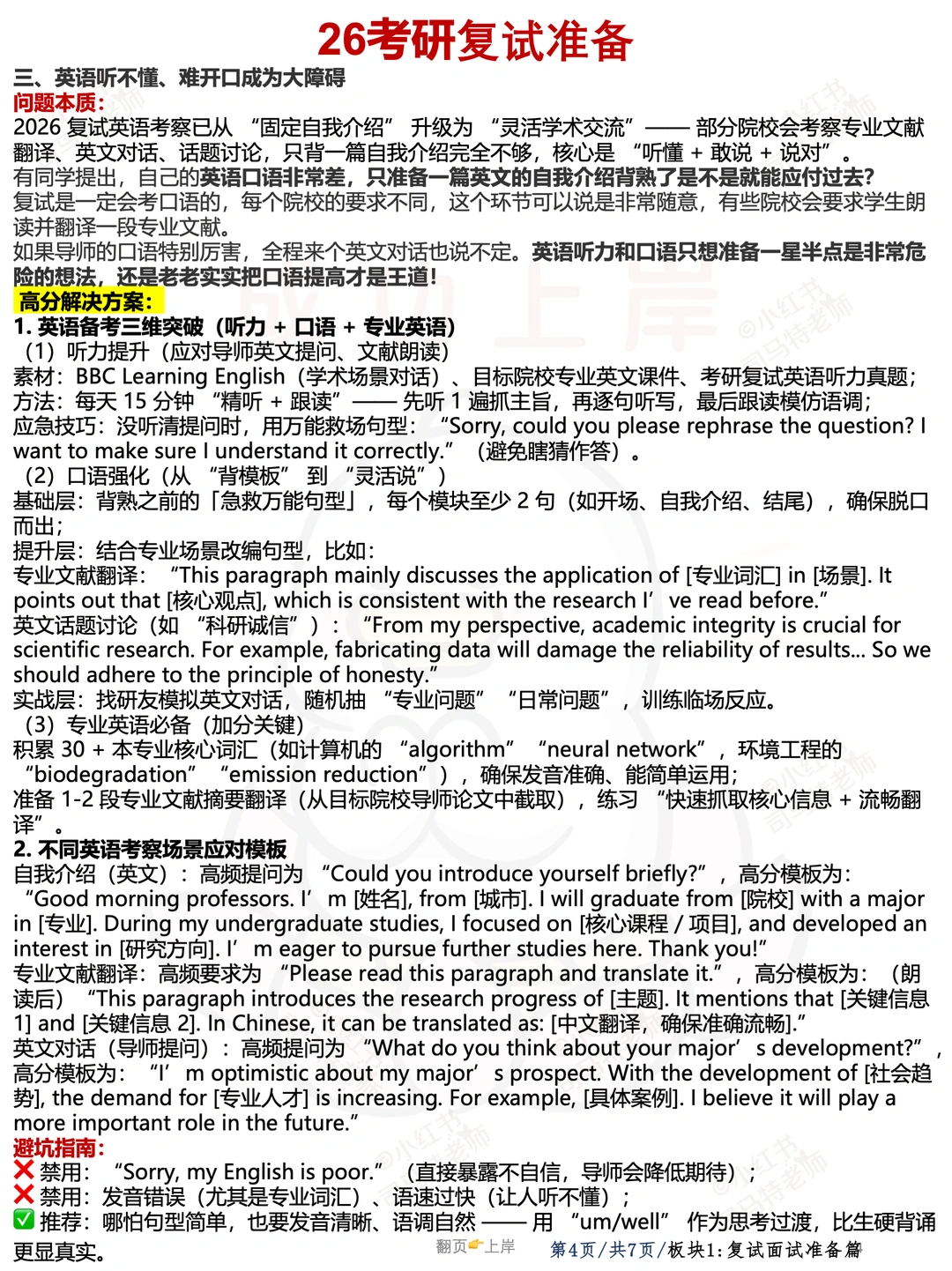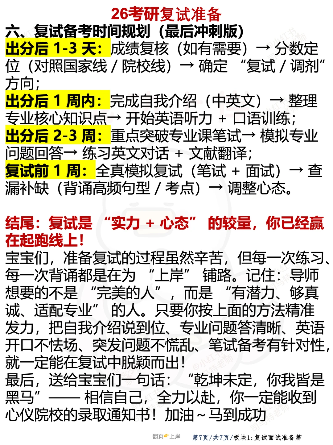 26考研的成绩越来越扑朔迷离了,所有之前公布24日出成绩的单位/学校纷纷都出尔反尔,竟然还有今天9点发公告10点删掉的,可能大概率是在等国家线吧,估计同学们已经完全没有心思学习了吧?但是现在,能静下心来学习的才是高手,你说呢。 既然不出分,如何逆转,那就是在别人乱了阵脚的时候挺住! 今天咱们来看一下复试应该如何准备,给大家准备了六大点!