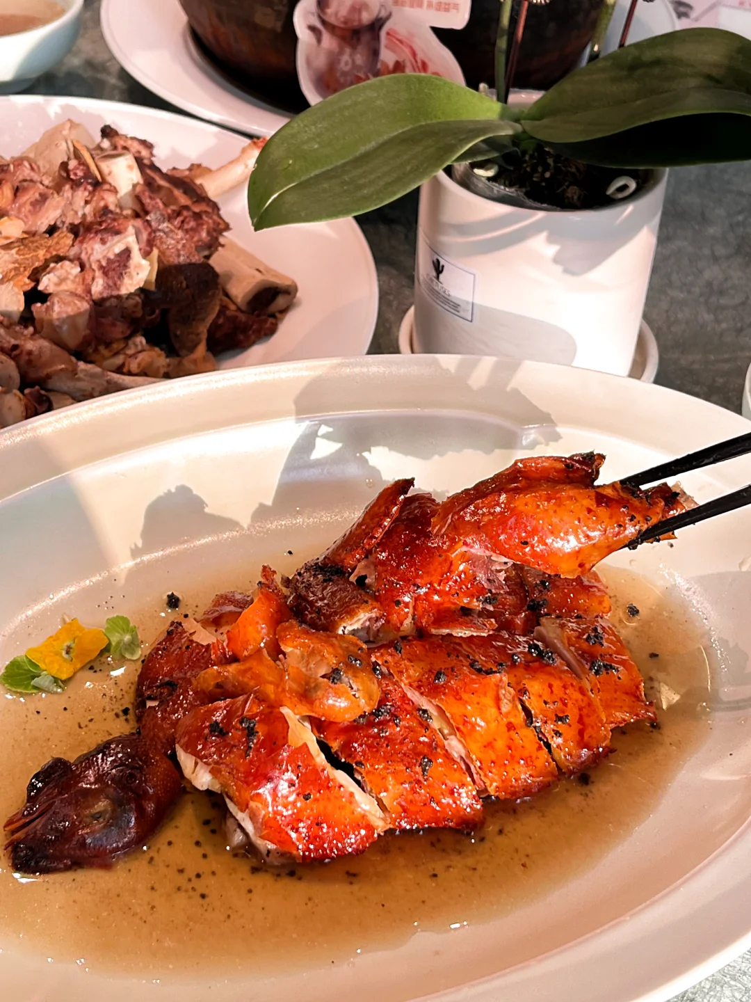 真的必点!!鸡皮烤到琥珀色,脆得像薯片~