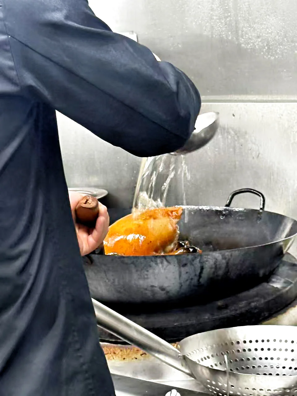 米饭粒粒分明,师傅在大铁锅里翻炒🔥锅气超足!