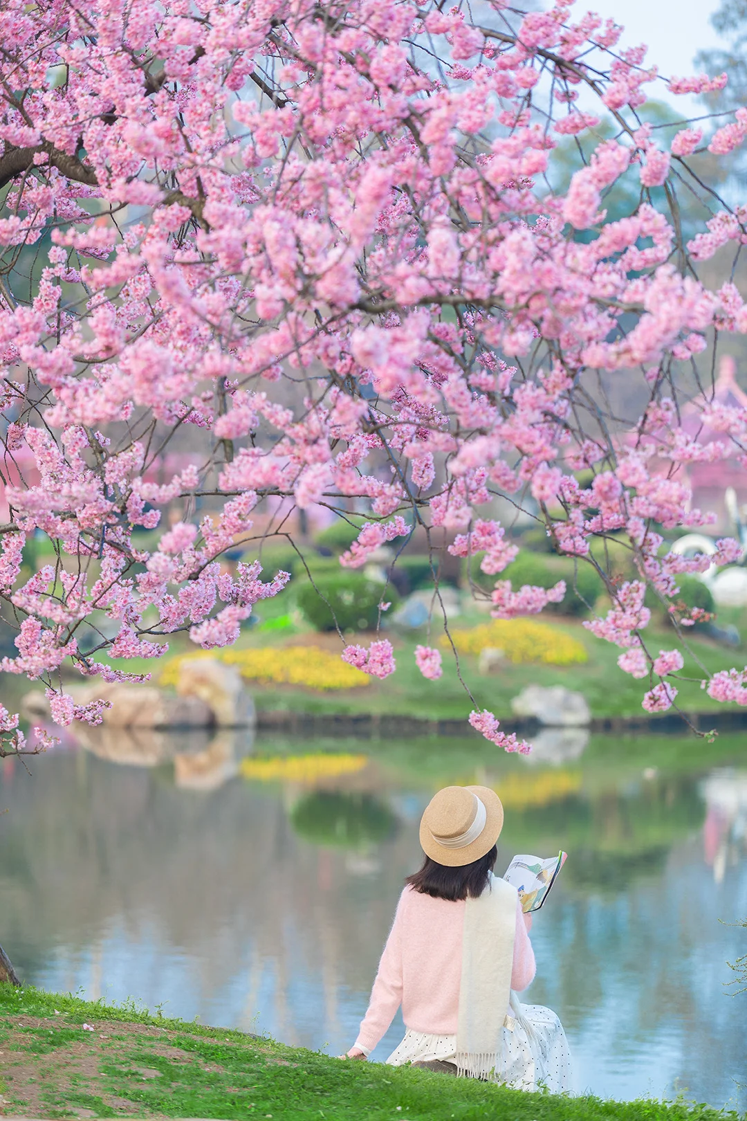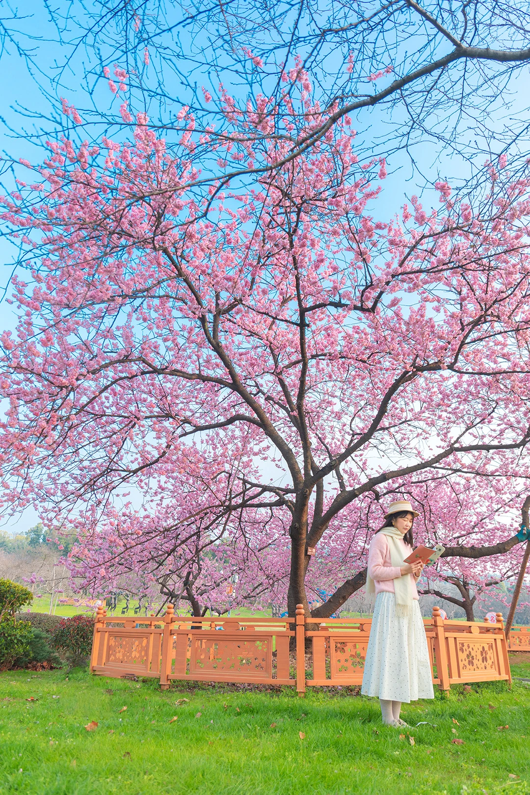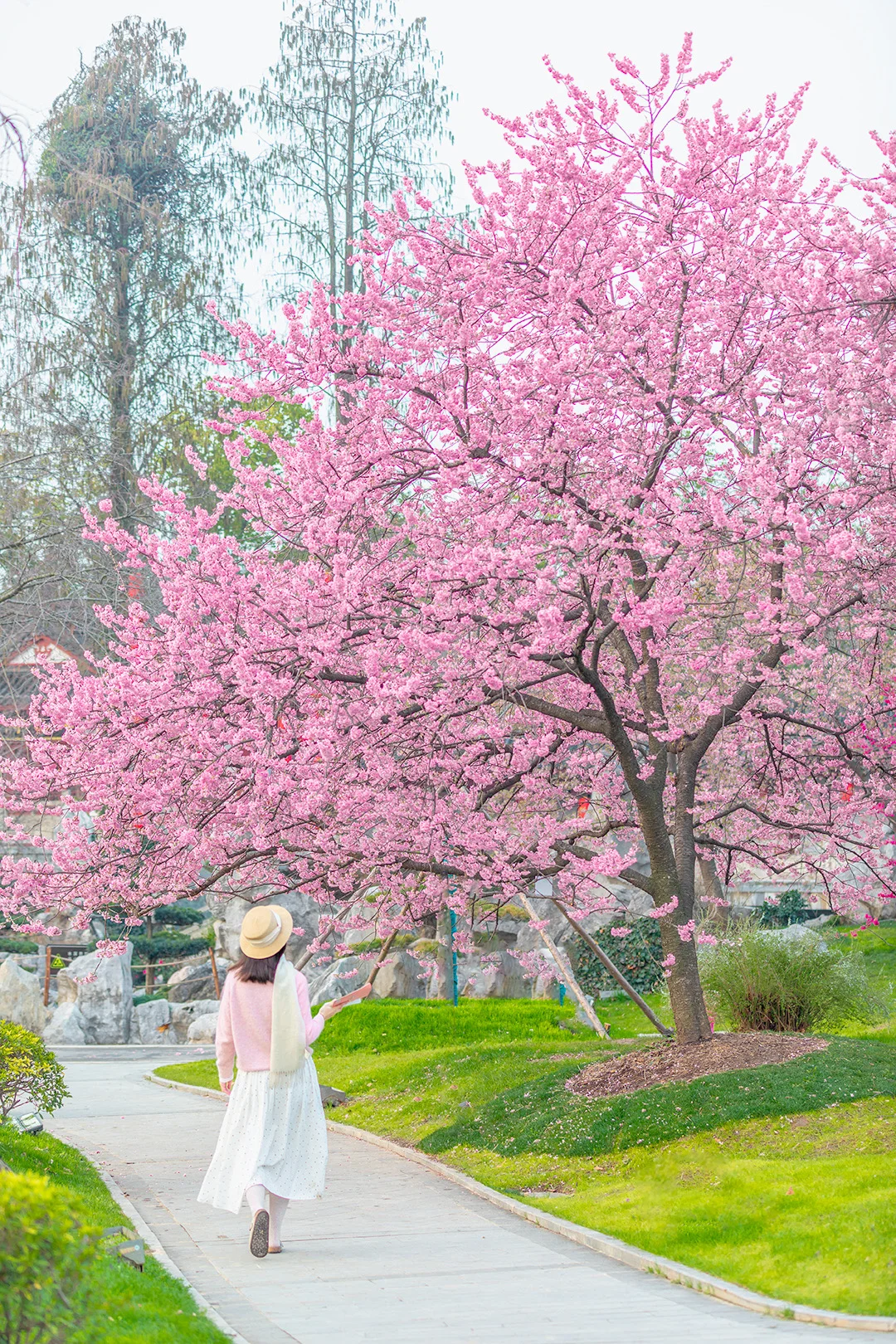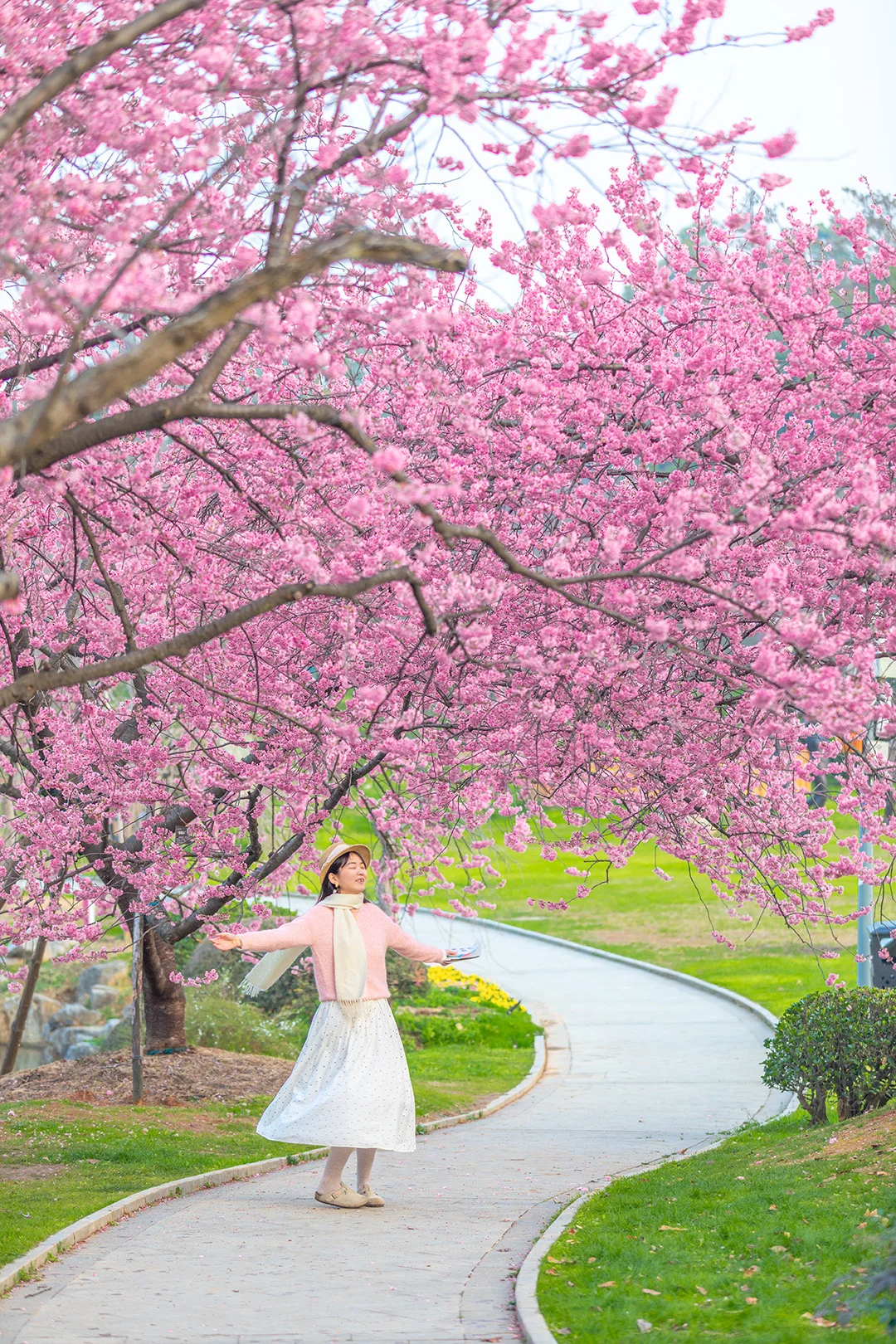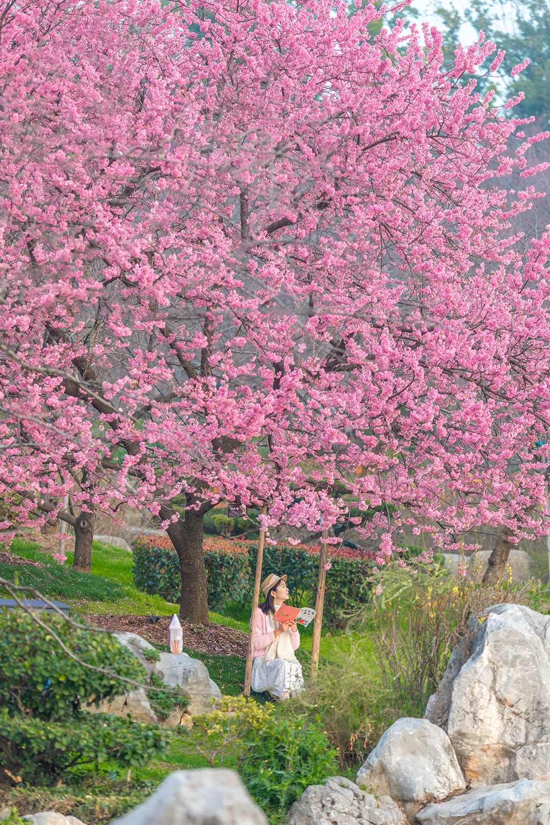 2月底-3月中,粉色早樱观赏期,目前正是盛花期