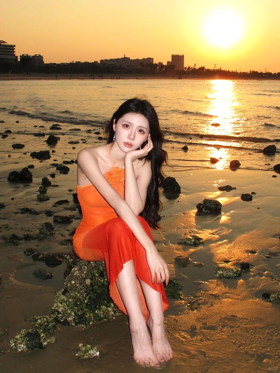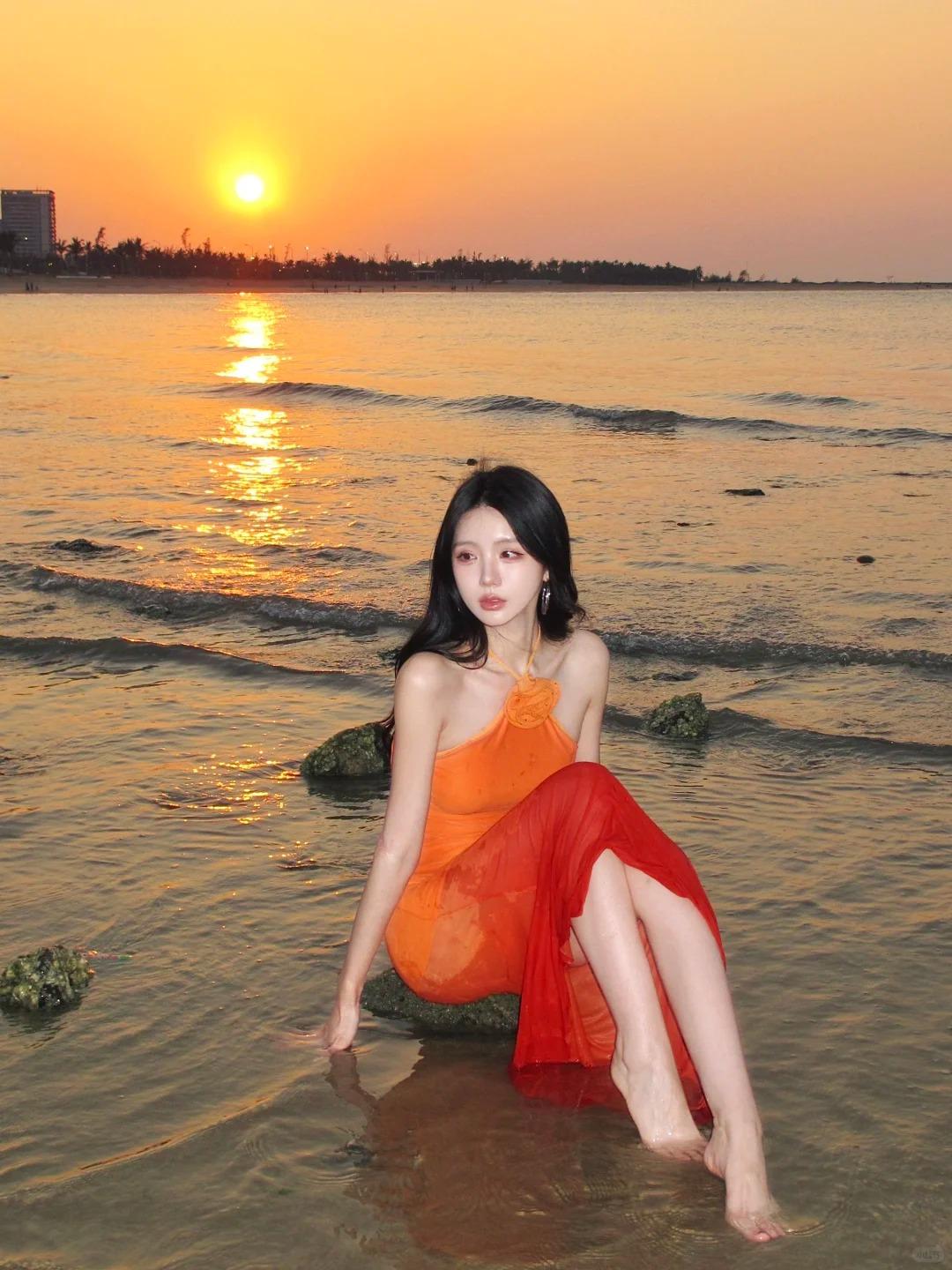 我坐在岸边,看落日慢慢沉进海里,把云朵、晚风都染成同色系的温柔,连海风都带着淡淡的暖意。爱这橘子色的大海,更爱一切与夕阳相关的浪漫故事——是落日归海的温柔,是晚风拂面的治愈,是暮色渐浓时,藏在光影里的所有温柔与期许,细碎又绵长,治愈着每一个奔赴它的人。