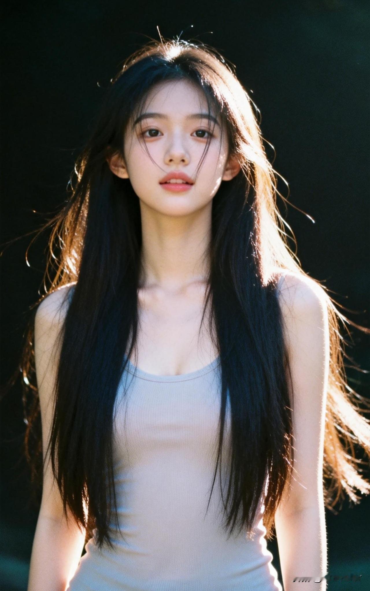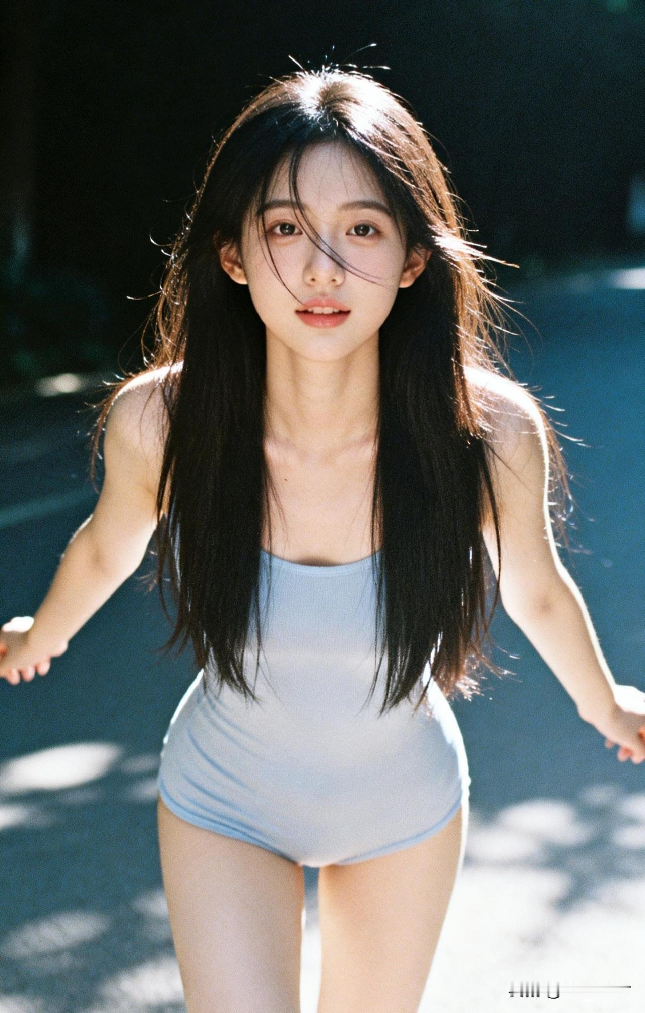 风吹长发飘,笑靥如花绽。