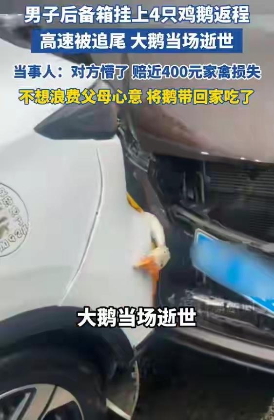 交警回应鸡鹅挂后备箱追尾被夹死村里的大鹅这辈子想过自己会被红烧、清蒸、爆炒、煨汤