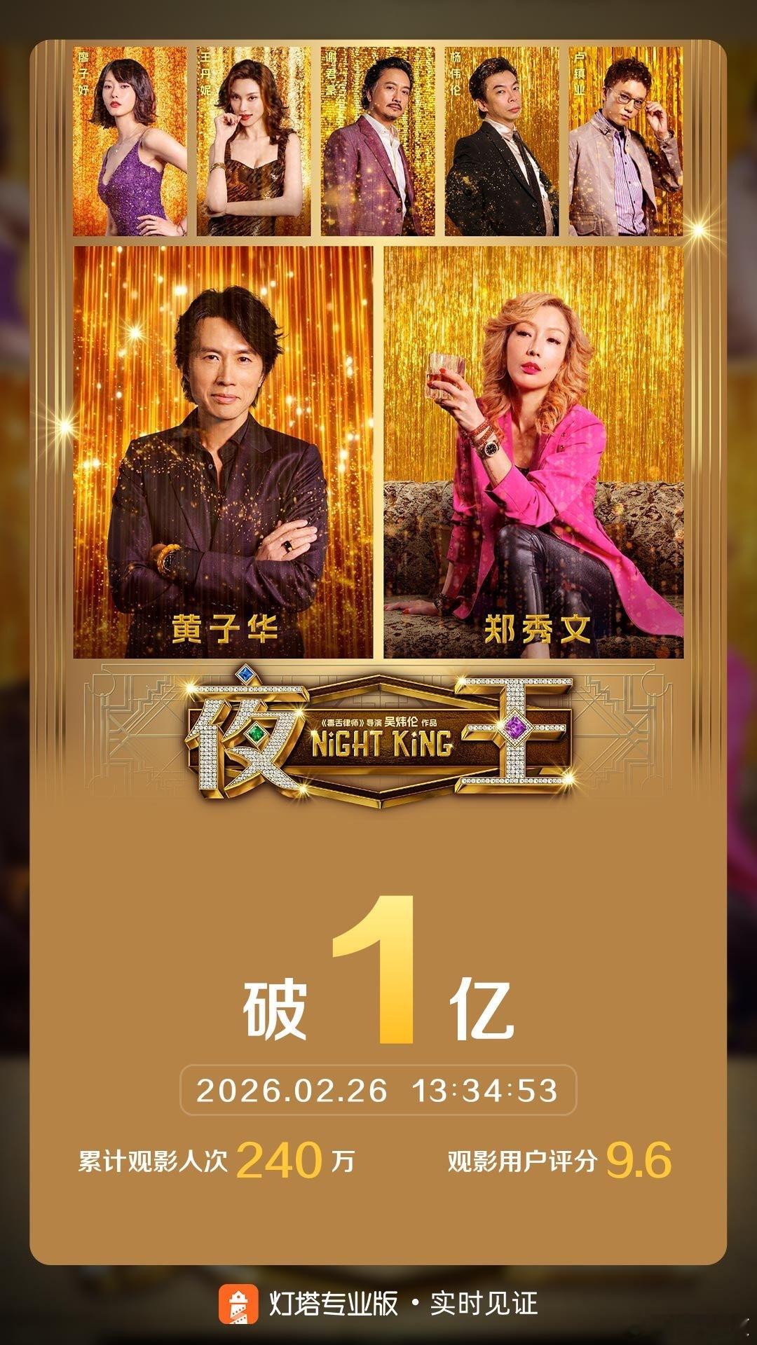 夜王票房破亿 电影《夜王》在今天票房破亿啦黄子华的权威谁来懂!!在两广上映后慢慢扩散到全国,实打实的靠作品走出来的路,必须支持一下这个夜王了!!