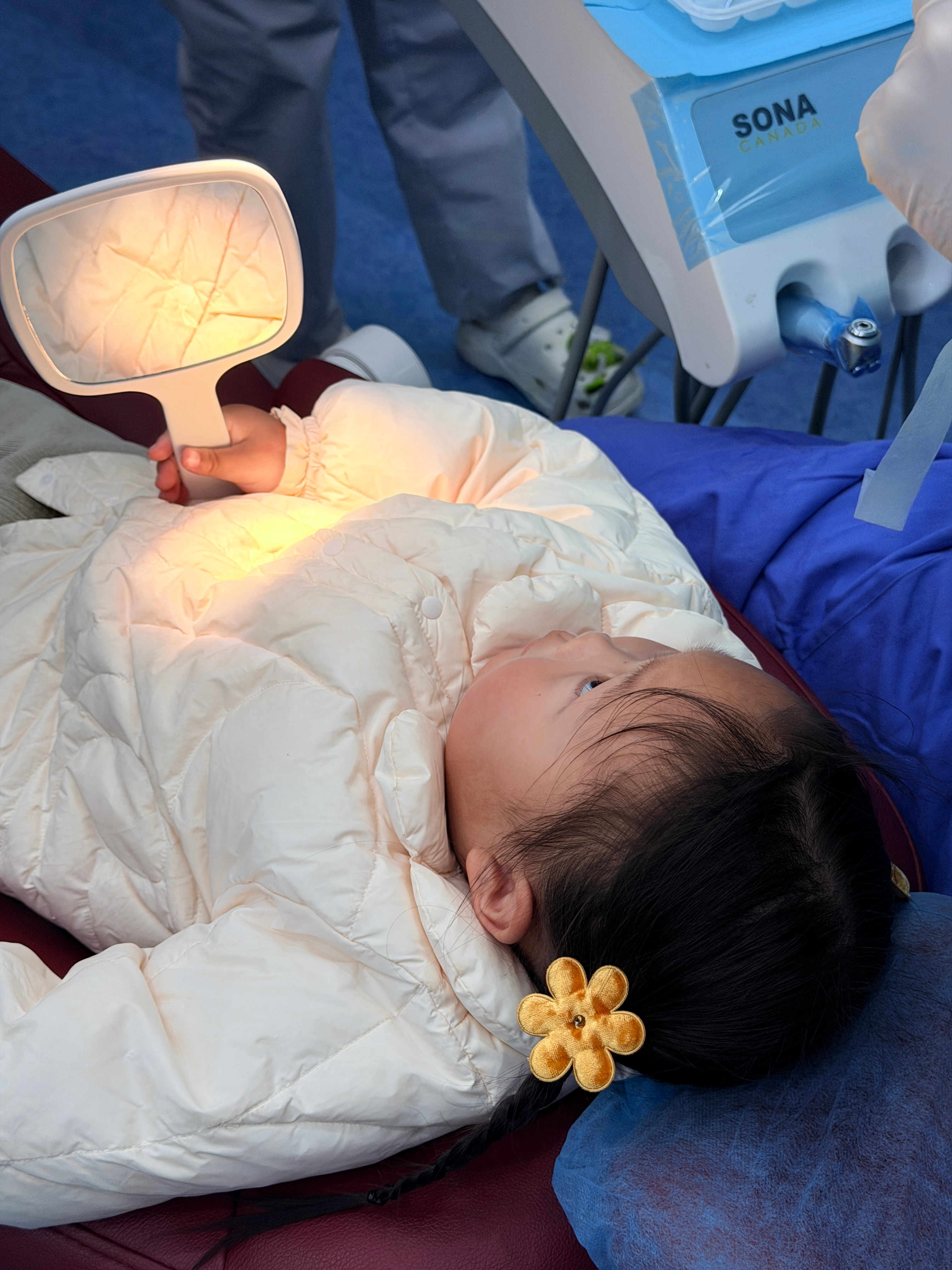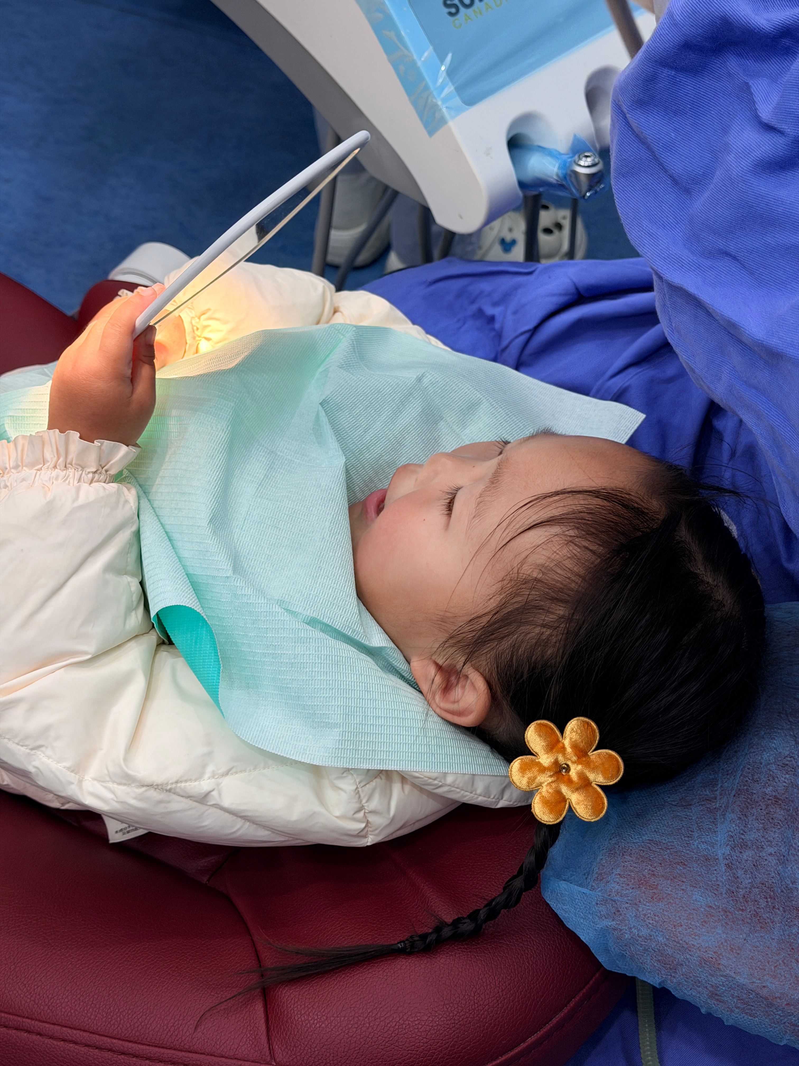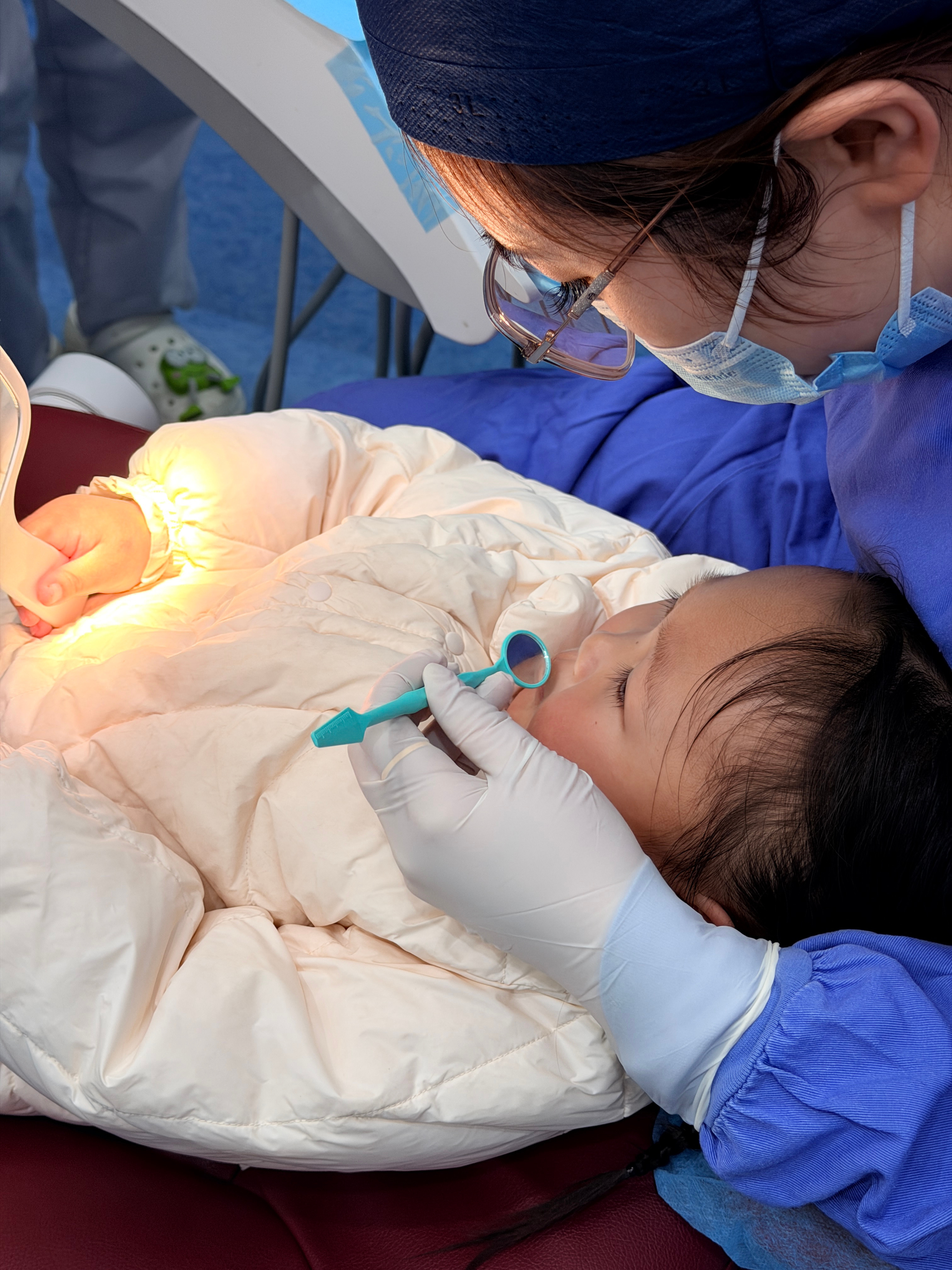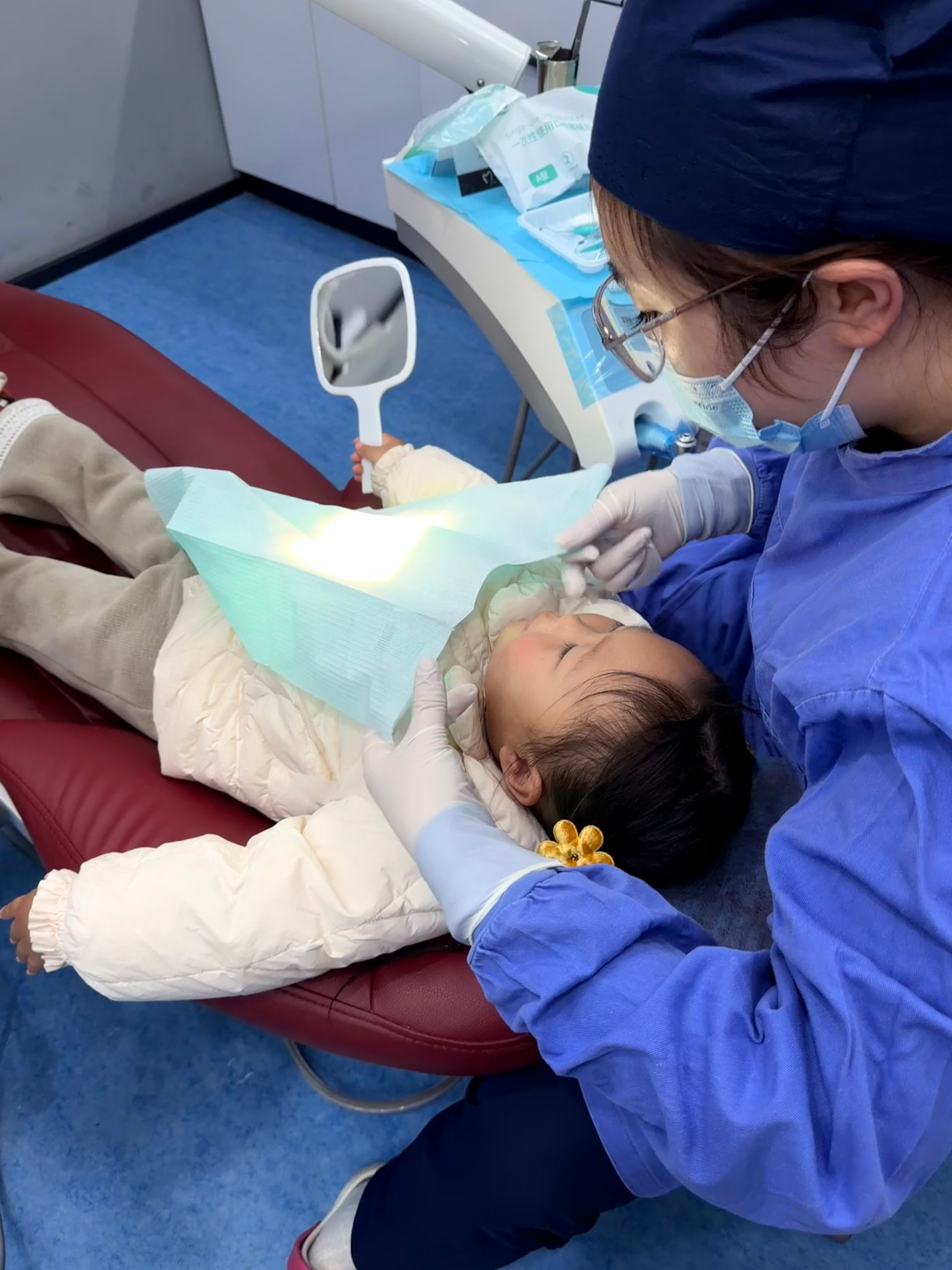 2岁9个月第一次涂氟,全程很配合表现棒棒~(注意紧张的小拳头hhh)