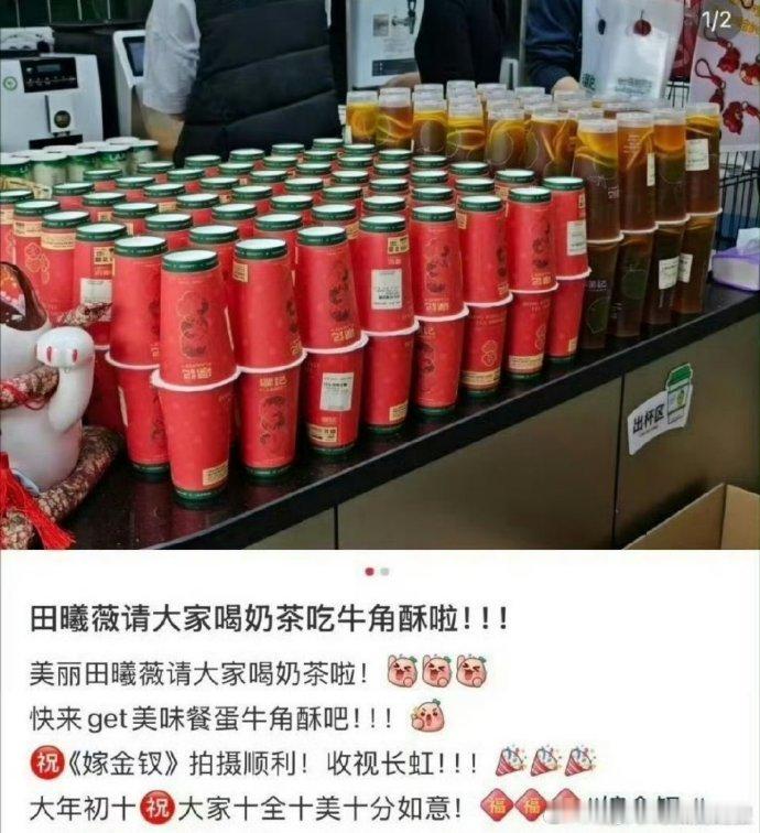 田曦薇请嫁金钗剧组喝奶茶吃牛角酥田曦薇请客投喂嫁金钗剧组人美心善田曦薇大年初十请客,奶茶牛角酥安排上!十全十美的日子,果然要做点美好的事!