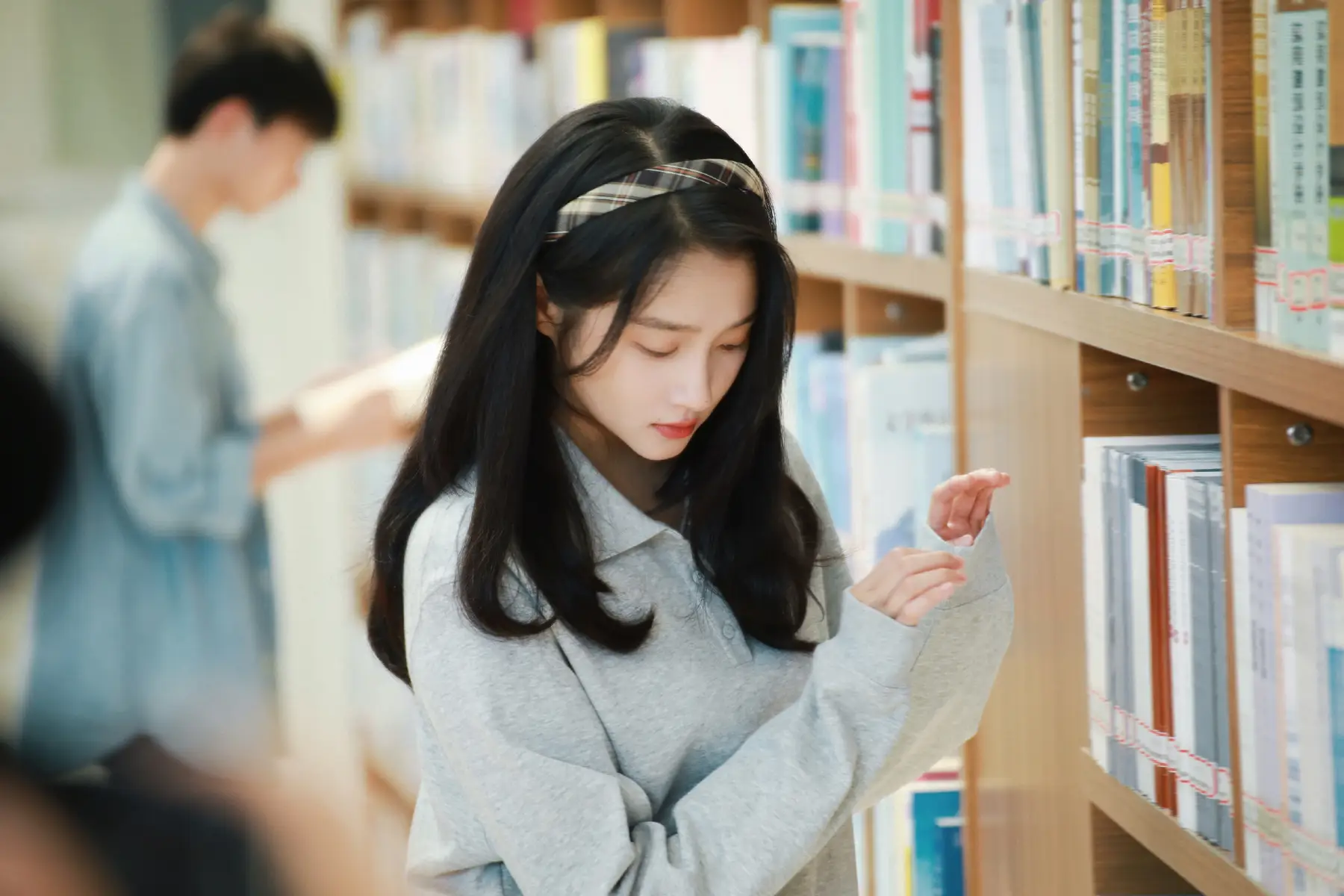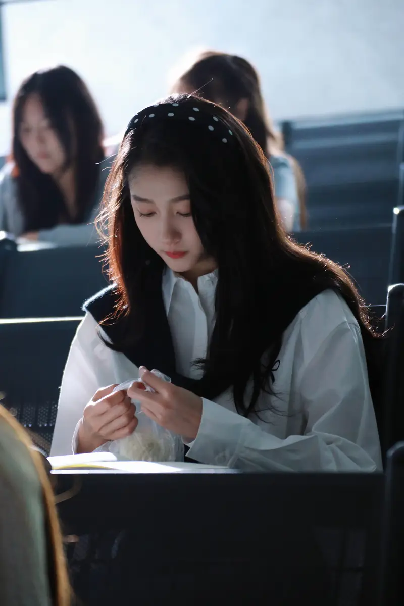 关晓彤留气质长发戴发箍清纯乖巧 校园风穿搭青春亮眼