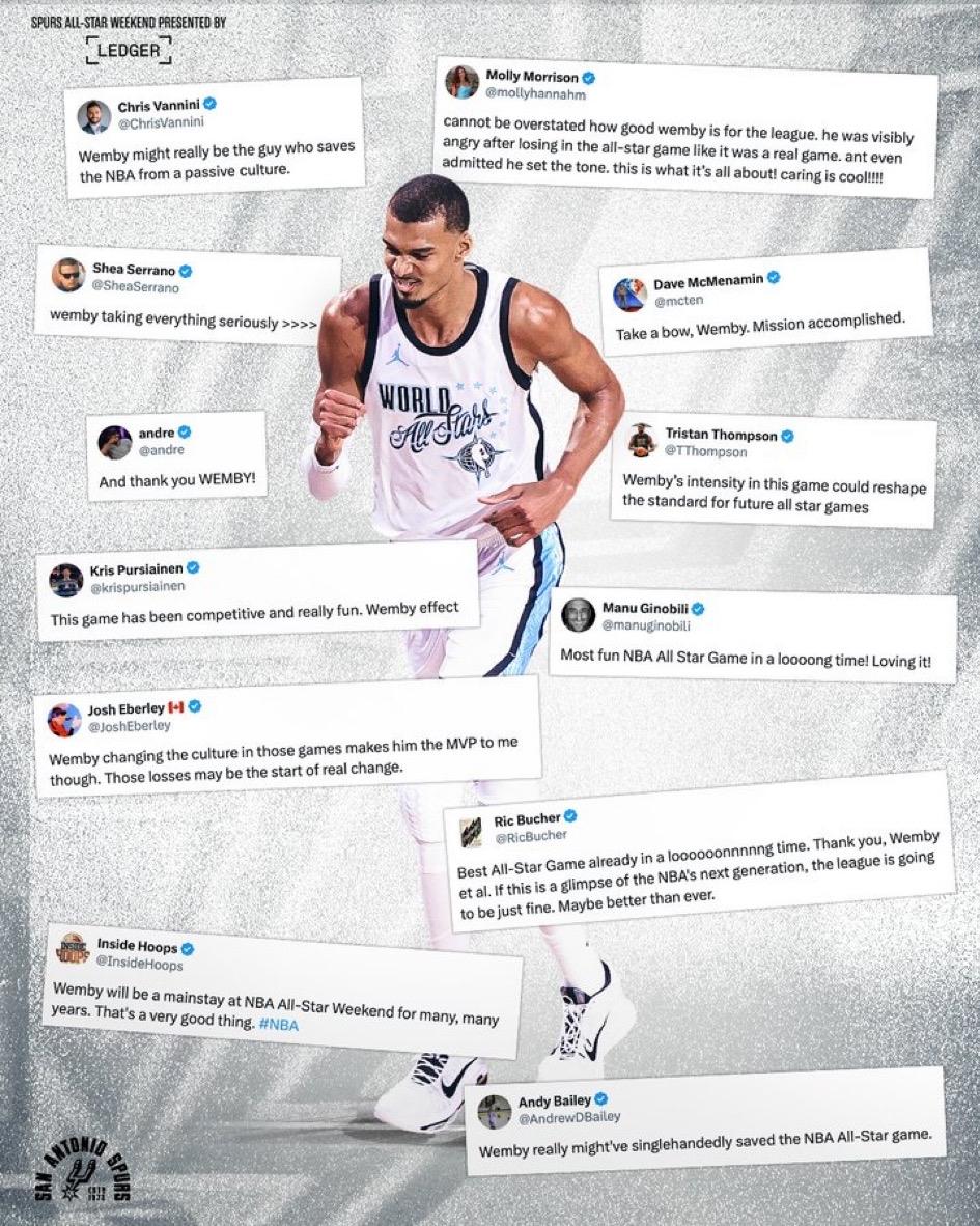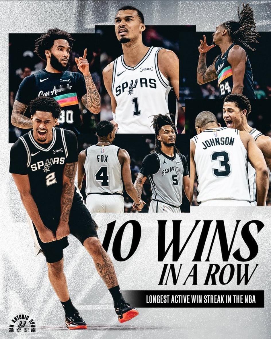 文班状态不佳,但仍有5个盖帽,正负值全队最高,防守端就是无敌的存在! 马刺逆转猛龙险胜,豪取10连胜!糟糕的罚篮(23罚中13)差点让马刺连胜中断,这难道就是马刺和文班亚马带给我们的惊喜吗!? (送三个盖帽:站帽,偷帽,摘帽,个个经典) 马刺队