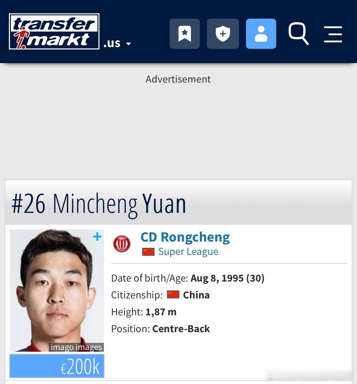 基本信息 • 姓名:元敏诚(Yuan Mincheng) • 出生日期:1995年8月8日 • 出生地:吉林省延吉市,中国 • 民族:中国朝鲜族 • 位置:中后卫 / 中卫(Defender) • 身高:约1.87 m(6 ft 2 in)