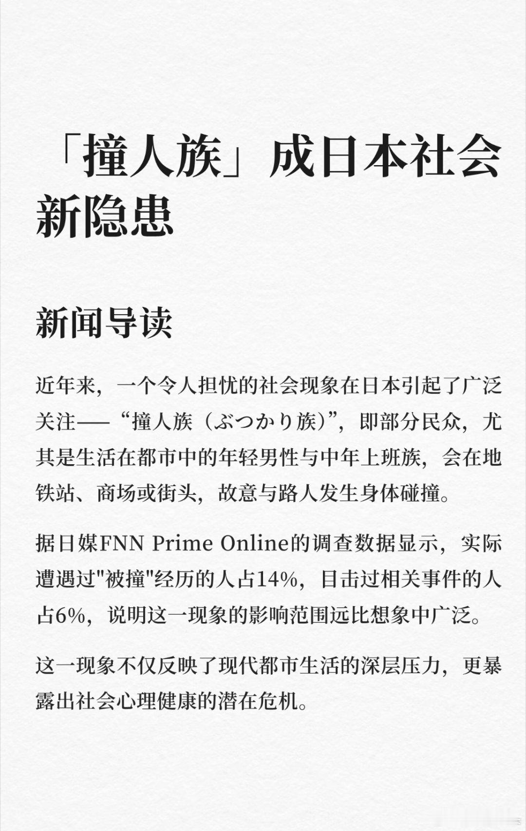 日本网民称日本确实存在撞人族日本人还真是变态啊。竟然会有这样一群人,故意在大马路