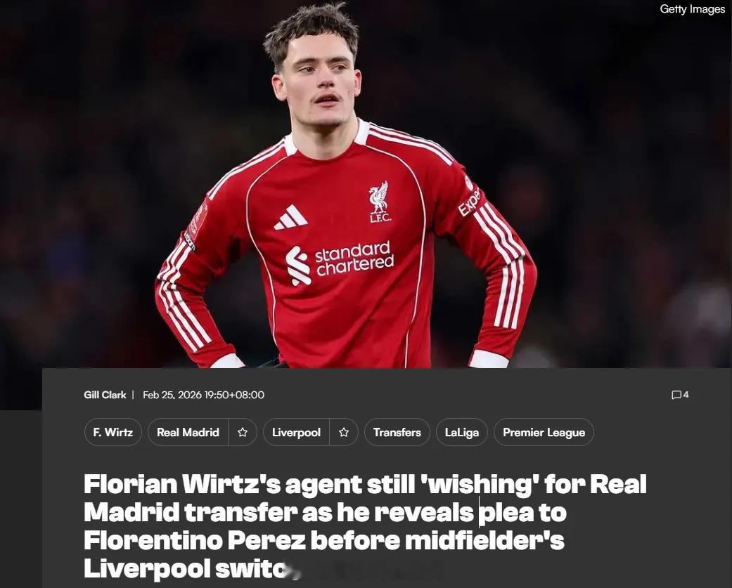 维尔茨的经纪人斯特鲁特近日接受图片报采访时表示,这名球星在加盟利物浦之前,他曾联系阿隆索请求将自己的客户带到皇马,而且他依然希望维尔茨未来为皇马效力。