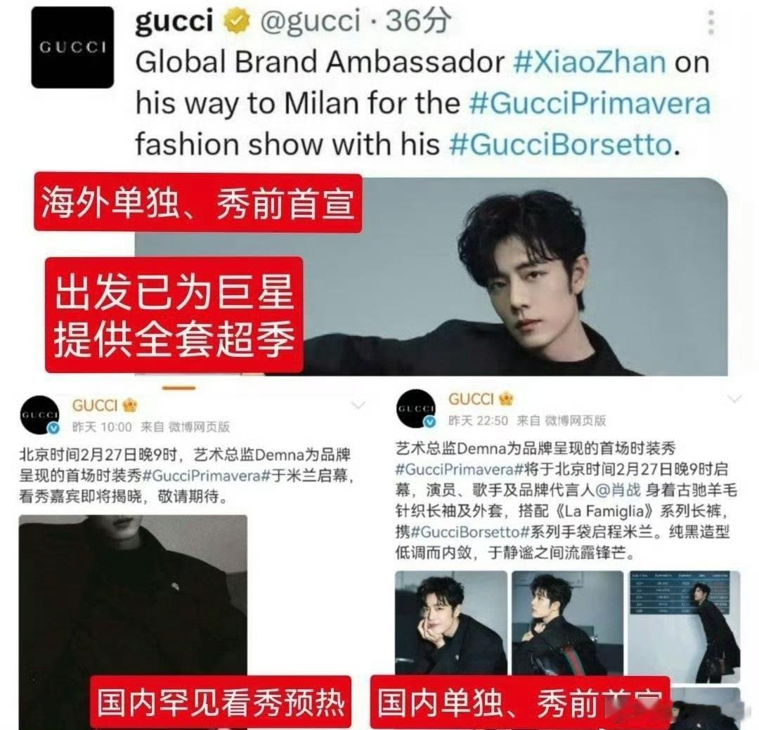 肖战已落地米兰GUCCI外网首位且目前唯一官宣看秀嘉宾——GlobalBran