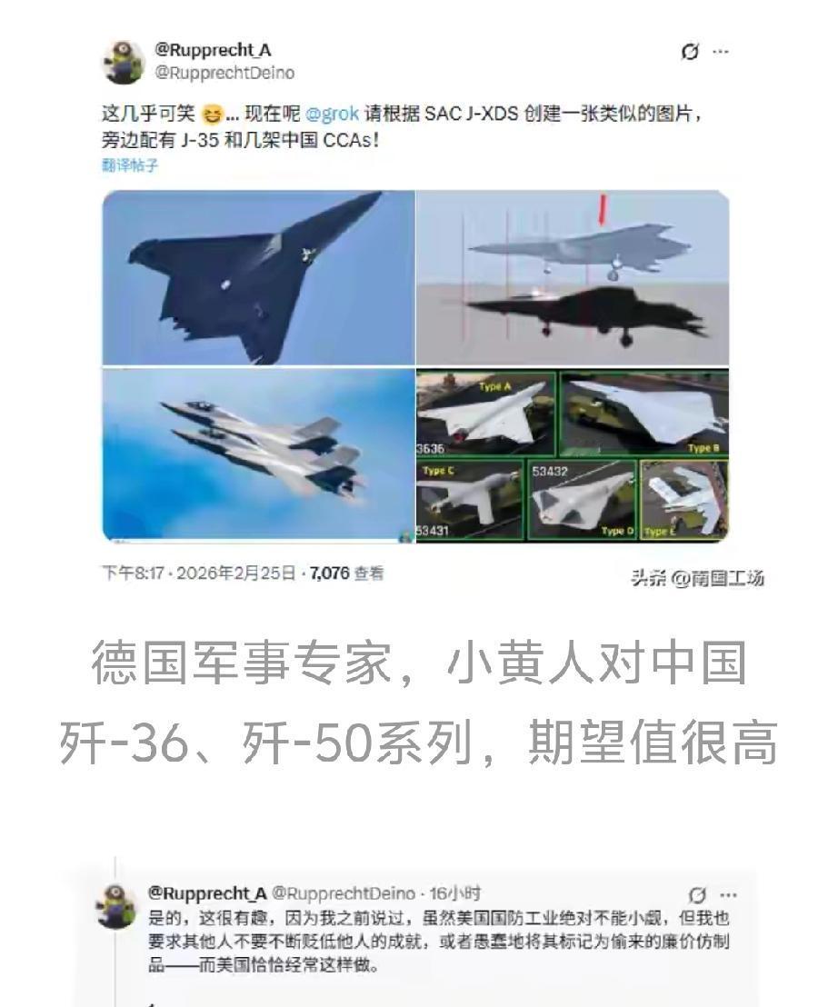 2026年2月25日,美国媒体还在说波音研制的F - 47进展“非常顺利”,有望2028年首飞,空军上将还夸波音投资给力,说项目非从零开始,五角大楼2010年就启动相关实验。可这边中国六代机歼 - 36都已经有新进展了。自去年12月起,歼 - 36多次飞行,前几天还实现了双机编队无伴飞。这说明歼 - 36技术成熟度相当高。德国专家说得没错,美国真该醒醒了,人家中国六代机都有4架了,美国F - 47还只是模型,这差距可不小啊。