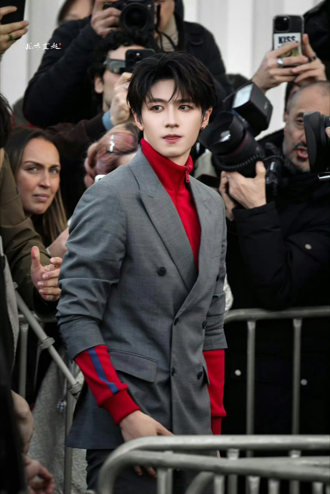 朱志鑫人群中最耀眼的红 朱志鑫亮相米兰prada秀场人群中最耀眼的红!生图即神图