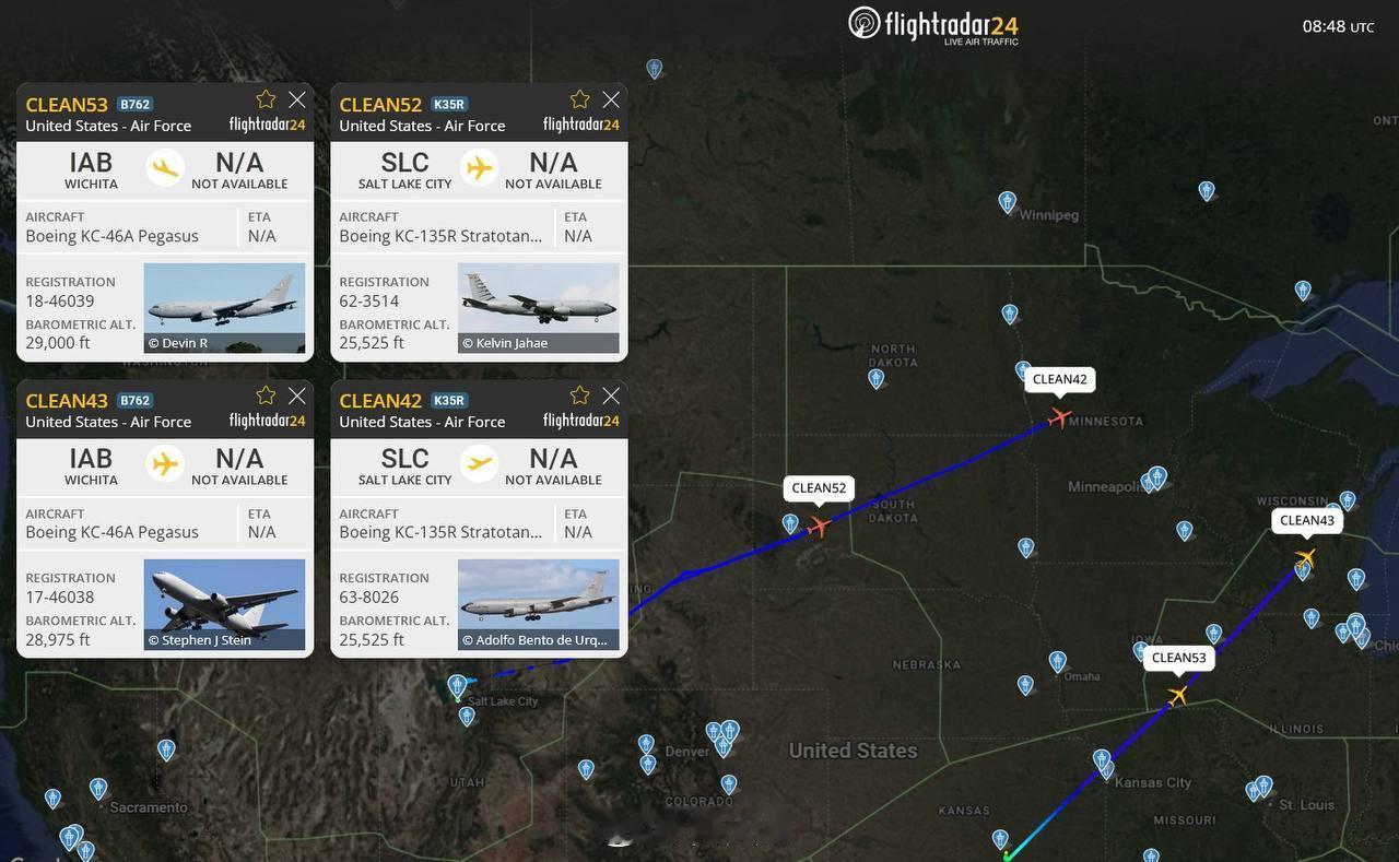 另外 14 架 F-35 隐形战斗机从犹他州的一个基地起飞,由 8 架空中加油机的支援穿越大西洋。