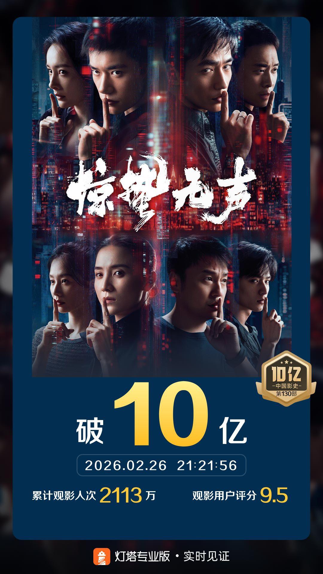 《惊蛰无声》票房破10亿,朱一龙认真表演获好评。 由张艺谋执导,易烊千玺、朱一龙、宋佳领衔主演,雷佳音、杨幂主演,张译友情出演,刘诗诗、刘耀文特别出演的春节档谍战题材电影《惊蛰无声》,累计综合票房破10亿,是2026中国内地电影市场第2部达到这一成绩的影片,也是内地影史第130部十亿俱乐部影片,同时跻身春节档历史32强。 由于张艺谋导演的力求创新,很多演员都在尝试用一种很新的方式在表演,而恪守演员表演底线的朱一龙则成为片中难得的风景线,他认真表演的态度获得了观众好评。