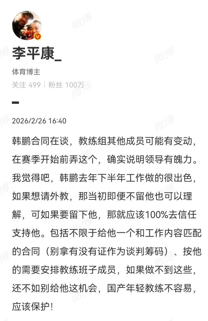 新赛季即将开始,山东泰山俱乐部领导展现出的业余操作,让人费解。一是取消了原计划3月2日泰山球迷嘉年华活动和临沂足球友谊赛。但山东泰山官网没有解释原因是啥。但我们泰山跟队资深媒体人透漏是因为球员身体疲劳,为了更好的完成新赛季备战工作,才如此操作。这多少说明俱乐部领导层工作不够深入,欠思考欠规划。工作随意性很大。球迷颇有怨言。 二是现在才开始谈主教练韩鹏的合同,如果媒体人不报道,大多球迷都以为韩鹏合同早就解决了。媒体人李平康讲的比较合理呀。韩鹏去年接手以来,工作出色,成绩显著。如果不请外教的话就应该及时和韩鹏续约,给予他充分的信任和足够的时间,按他的需求安排并续约教练班子,这样才有利于球队的备战工作。而不是现在联赛要开打了才想起来谈这事。非常的业余。 最让泰山球迷厌恶的就是俱乐部领导层在出事后选择当哑巴,不与媒体和球迷们沟通交流。-6分起步的话,俱乐部的工作应该更细致更严谨,这样才能取得好成绩。所以希望山东泰山俱乐部新赛季要开口说话,不要再当哑巴!希望济南文旅能有点上进心!