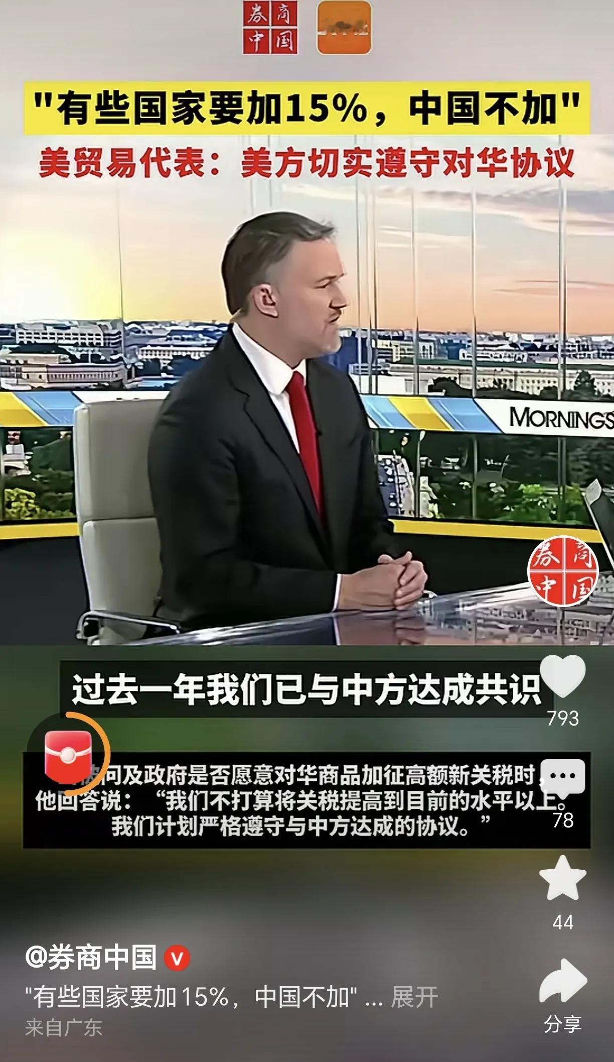 美贸易代表:我们计划严格遵守与中方达成的协议。 懂王又要加关税了,对部分国家可能上调到15%关税。对中国却是严守当初签订的协议,没有敢反悔搞事。 当初的关税战打得值,对美国必须要用它听得懂的方式说话,才能让它听进去。 中美欧关税博弈 美方加关税 美国贸易关税 新对等关税 中美关税协议 美国关税协议 美方关税