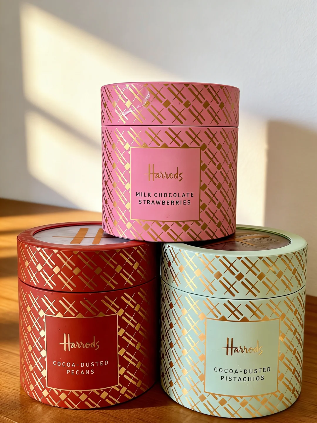 ▶Harrods的明星巧克力,包装很好看很有质感~开心果味、焦糖海盐口味闭眼冲!开心果是巧克力粉+牛奶巧克力芯+焦糖夹层+整颗开心果仁,吃起来脆脆的,咸甜搭配一点不腻,记得多囤几盒,回国绝对不够分~