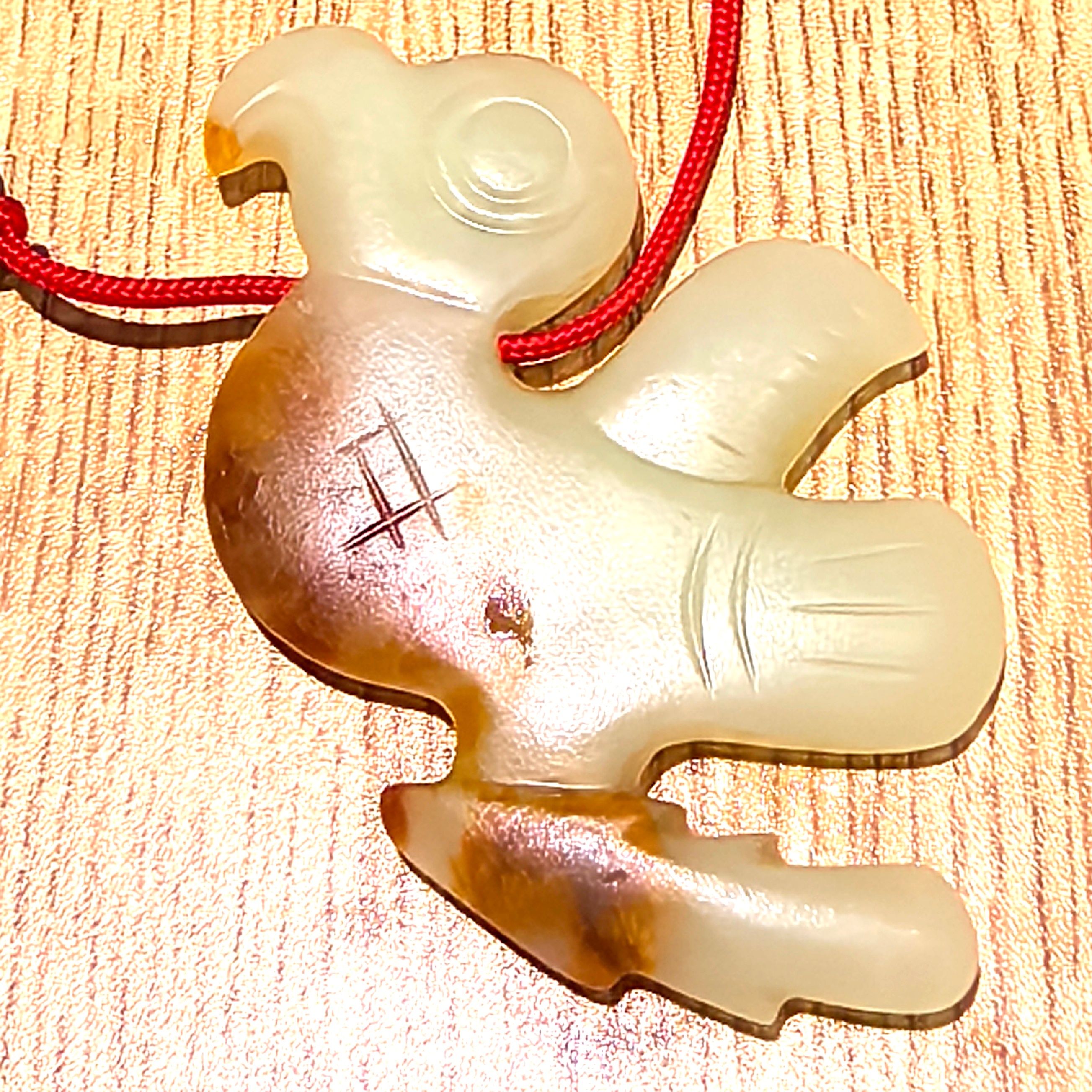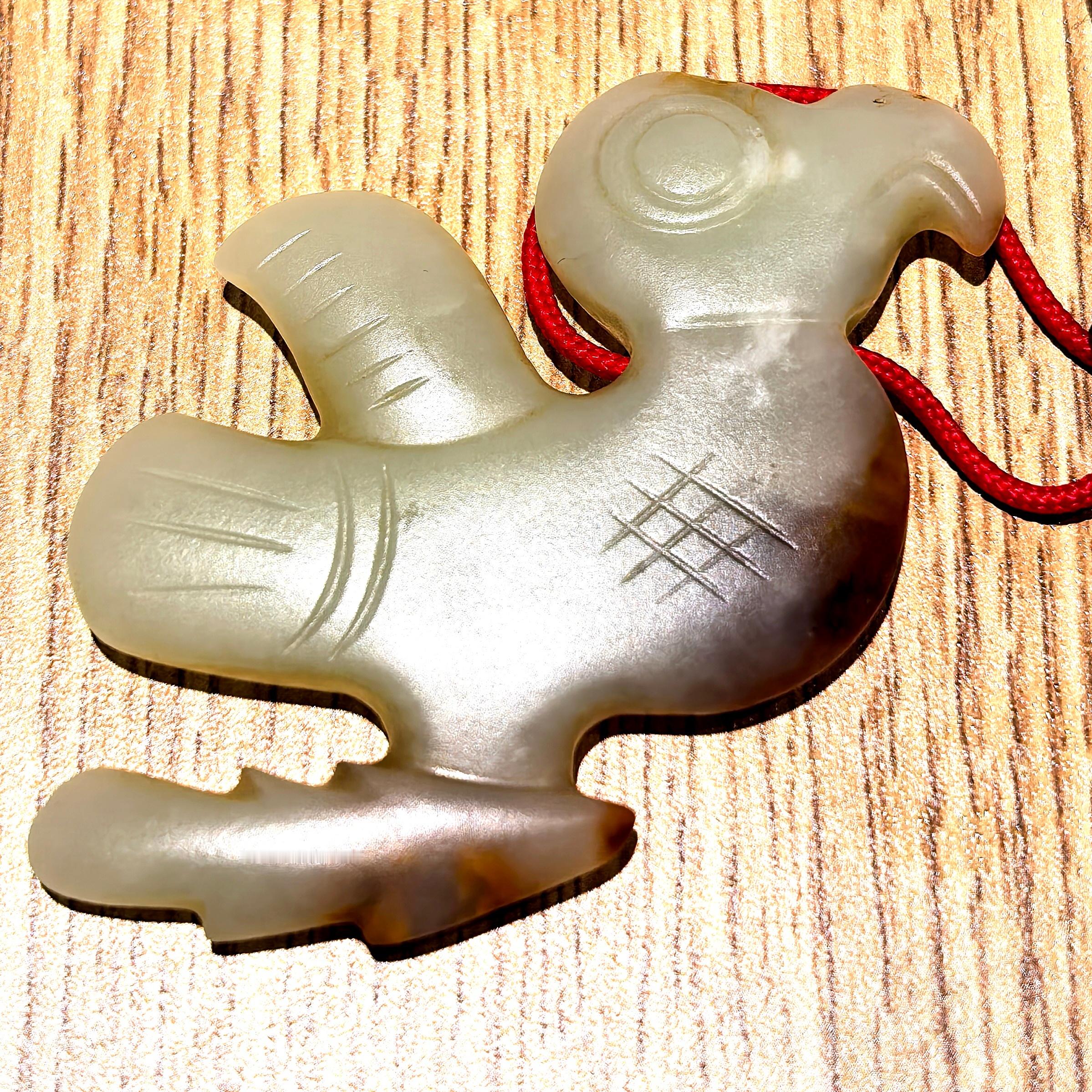 另一件是红山鸟型器,也相当突特,单脚抓鱼,飞翔状态。 上海