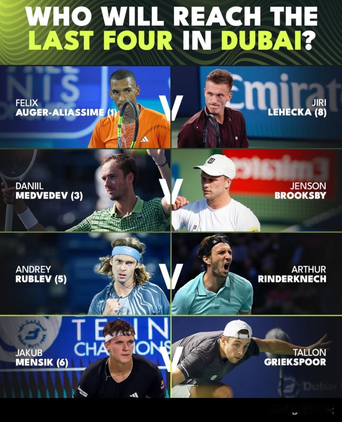 ATP500阿联酋迪拜站男单第三轮比赛中,3号种子梅德韦杰夫以6-2、6-1横扫美国布鲁克斯比强势挺进四强! 男单半决赛,梅德韦杰夫将对阵头号种子阿利亚西姆,后者以6-3、7-6(2)战胜8号种子捷克莱赫奇卡的胜者!