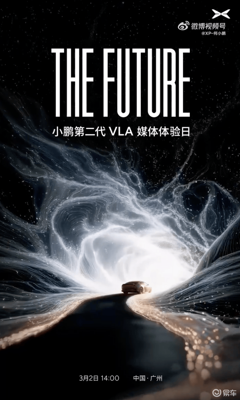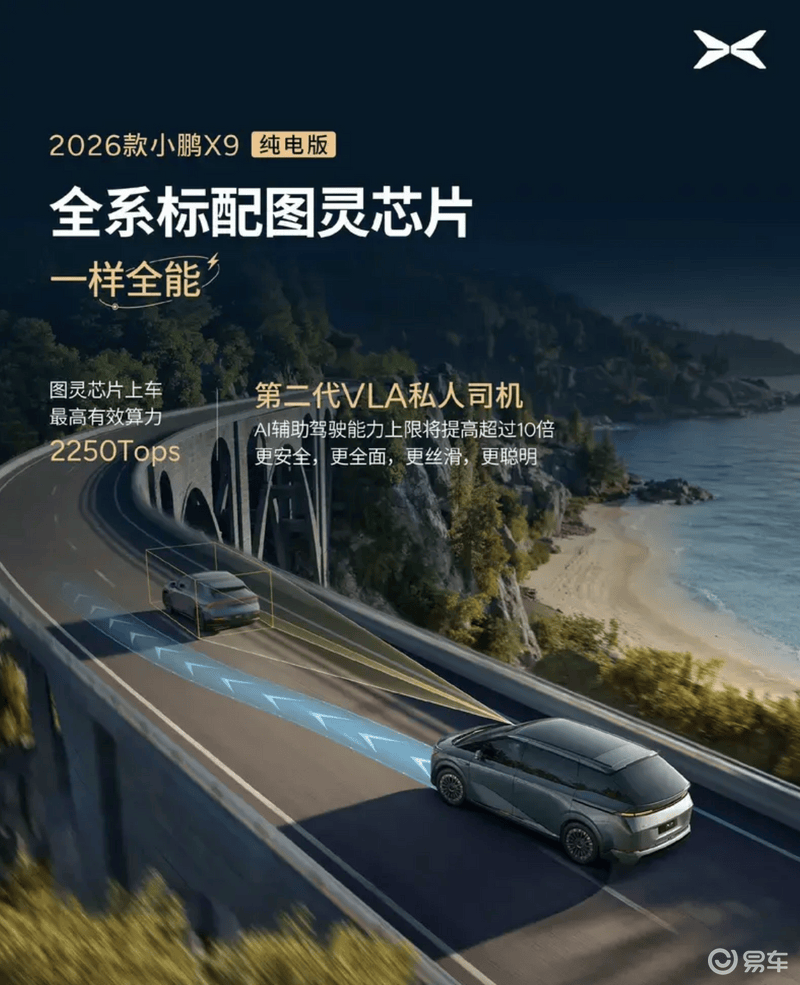 易车讯今日,小鹏汽车董事长何小鹏发文表示,小鹏第二代VLA将于3月2日发布,当天,2026款小鹏X9纯电版也将同步发布,同样搭载第二代VLA。