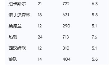 在伤病发生率这一关键指标上,利兹联以9.0的数据排名第一,显示出极高的球员损耗频率。热刺和伯恩茅斯紧随其后,发生率均为7.6。