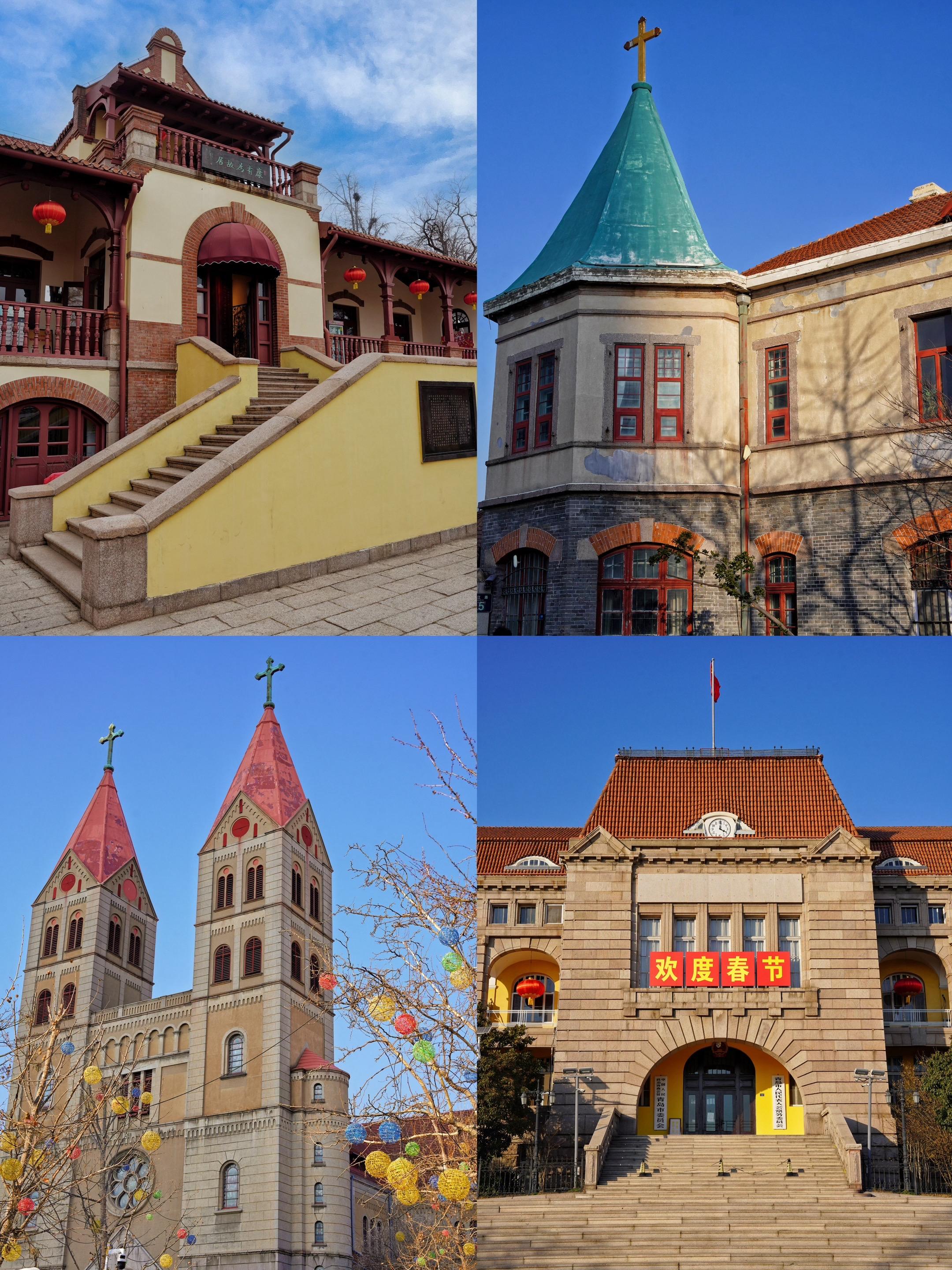网红墙涂鸦街,琴屿路的S湾,在我看来都是肤浅的狂欢,青岛的美其实都藏在红瓦绿树间那些年代久远的历史建筑里,德式的红瓦,哥特式的尖塔,地中海的穹顶和华洋折衷的中式里院,几十个国家的建筑在这扎堆呈现,历史建筑从来不是简单的砖石堆砌,而是青岛这座城市的文化肌理