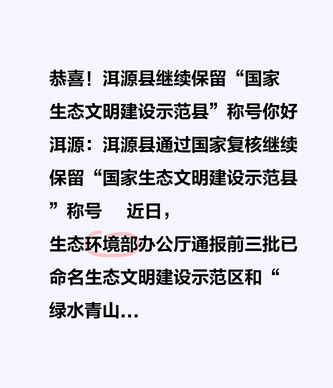 恭喜!洱源县成功续获“国家生态文明建设示范县”称号 洱源县经国家复核,成功续获“国家生态文明建设示范县”称号。 近日,生态环境部办公厅公布了前三批已命名生态文明建设示范区和“绿水青山就是金山银山”实践创新基地的复核评估结果。 洱源县作为第三批国家生态文明建设示范县,顺利通过国家复核评估,得以继续保留“国家生态文明建设示范县”这一称号。