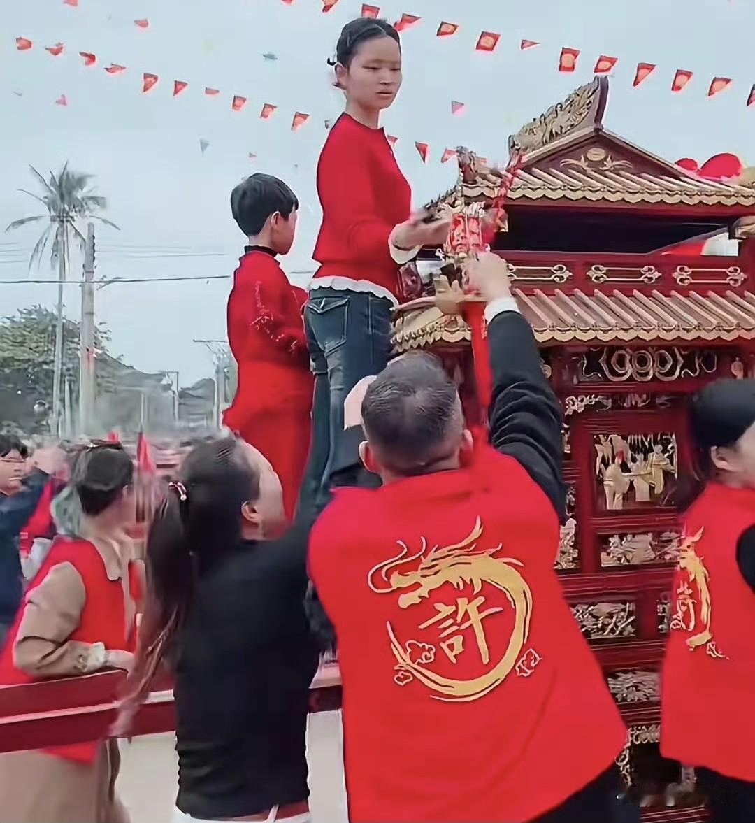 50万想换妈祖⁉️连掷8次怒杯,神轿都不答应! 富商破坏妈祖巡游规矩引众怒🔥 大年初二,广东湛江东海岛拾石村。每年都会举行隆重的妈祖巡游,而整个仪式的灵魂是一位14岁的女孩。据了解她从8岁起就通过严格的仪式后抛掷圣杯后被妈祖选中,连续六七年扮演小妈祖,所有流程都熟悉。每年都是全村人乃至方圆百里公认的神选之人。 但今年出事了,据了解村里有个做建材生意的许姓富商,据说捐了50万赞助村里的活动,钱掏了,条件也开了,要求今年要把这个小妈祖得换成他家那个六七岁的男童,小名据说叫耀祖,就为了让孩子露个脸,让全国人民看到。直接把原定的女孩给踢出了局。热门 结果呢?闹剧开始了:男童被精心打扮后被抱上神轿后,甚至怕他站不稳特意在轿子上搭了块木板,但是他全程手足无措。 最诡异的一幕发生在起轿前,让男童掷圣杯请示神明,男孩一连掷了8次,全是怒杯。神轿像焊在地上一样,纹丝不动。 连掷8次不同意,第9次就是大凶,谁都不敢动 最后只能灰溜溜地去请真正的女孩回来救场。 工作人员冲进女孩家,就想强行把女孩拖走。 女孩被拽眼里含着泪,委屈地质问:轿子上是谁?你们请了别人,为什么还要来请我? 一个14岁的孩子最终在胁迫下含泪被架上神轿,和那个顶替她的男孩一起完成了巡游。 事后女孩发了条视频,只淡淡地说了句:家人把我保护得很好,公道自在人心。 即便后续村子特意蓝底白字发公告表示男童其实是女童,且是太贪玩才上轿子,可这样公告谁会信? 富商以为50万就想买断一切,富商可以用钱换人,资本亵渎神明引发全网众怒,事件发酵后,据说两广和福建的老板圈里有人放话,以后不和这个村姓许有生意往来!