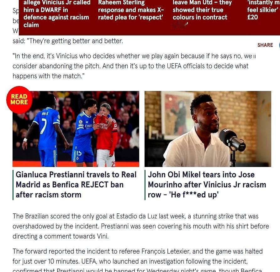 维尼修斯遭辱后,绝杀+怼脸跳角旗舞 你盯着伯纳乌的屏幕,看着维尼修斯把球捅进死角,80分钟,皇马绝杀本菲卡。 3天前的首回合,本菲卡球员普雷斯蒂亚尼被曝用种族歧视词汇骂他。UEFA禁赛1场,本菲卡上诉直接被驳回。 赛前库尔图瓦放话,只要维尼修斯不想踢,全队直接离场,把烂摊子甩给UEFA。 本菲卡球迷在伯纳乌全场嘘他,他进球后直奔角旗区,把标志性舞蹈跳了三遍,每一次都对准客队看台。 楚阿梅尼赛后说,这场胜利,是给所有反种族歧视的人。 库尔图瓦拍着他的背,说就爱看他这股硬劲。 用进球说话,比一万句抗议管用。