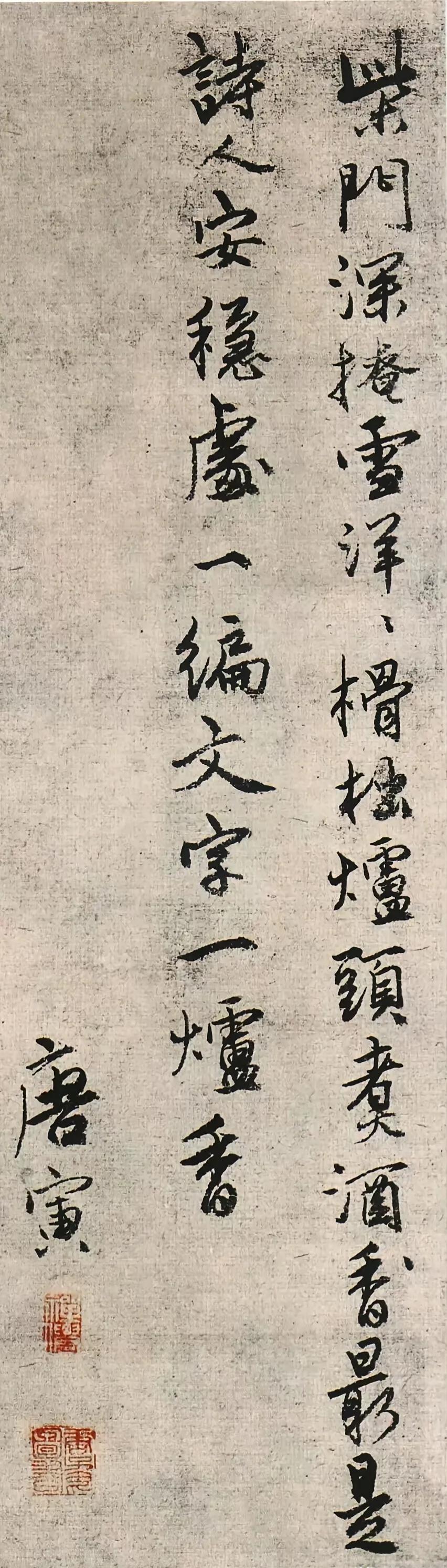 明唐寅唐伯虎行书《题柴门掩雪图》。唐伯虎才子就是才子,他的题画诗就是这样好,他的亲笔书写的题画诗书法就是这样美。看其书法功力深厚,结构平衡,无一处不工稳,无一处不细腻,即使是蝇头小字,但笔划也分粗细,文字也讲章法布局,看了其书法三万个毛孔无一处不舒服!