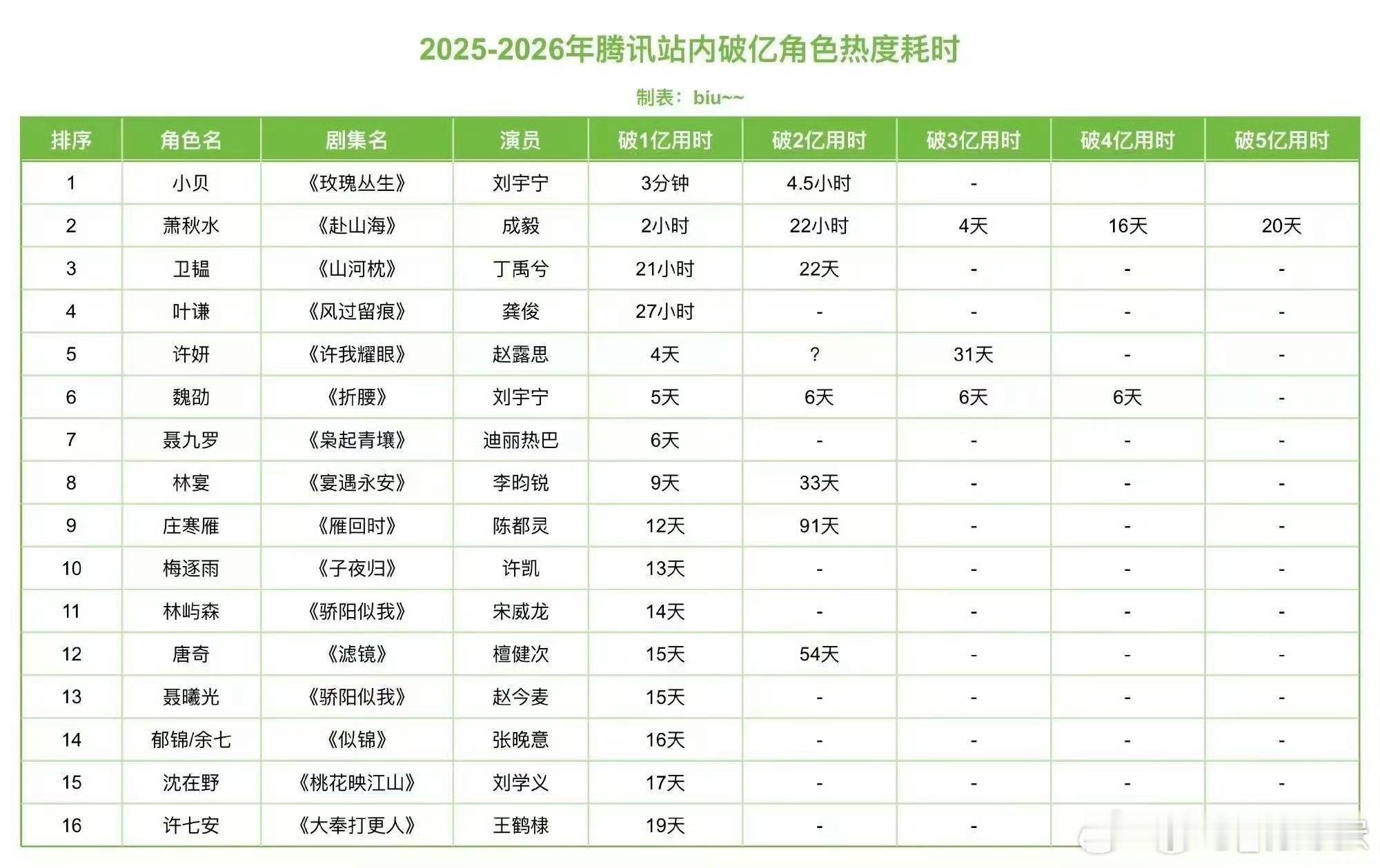3分钟破亿,角色破亿速度史冠4.5小时破2亿,破2亿速度史冠站内首日热度峰值:21555首日热度:26年平台TOP1角色热度:首日26年TOP1广告投放:开局5广,首播4集19广173秒!