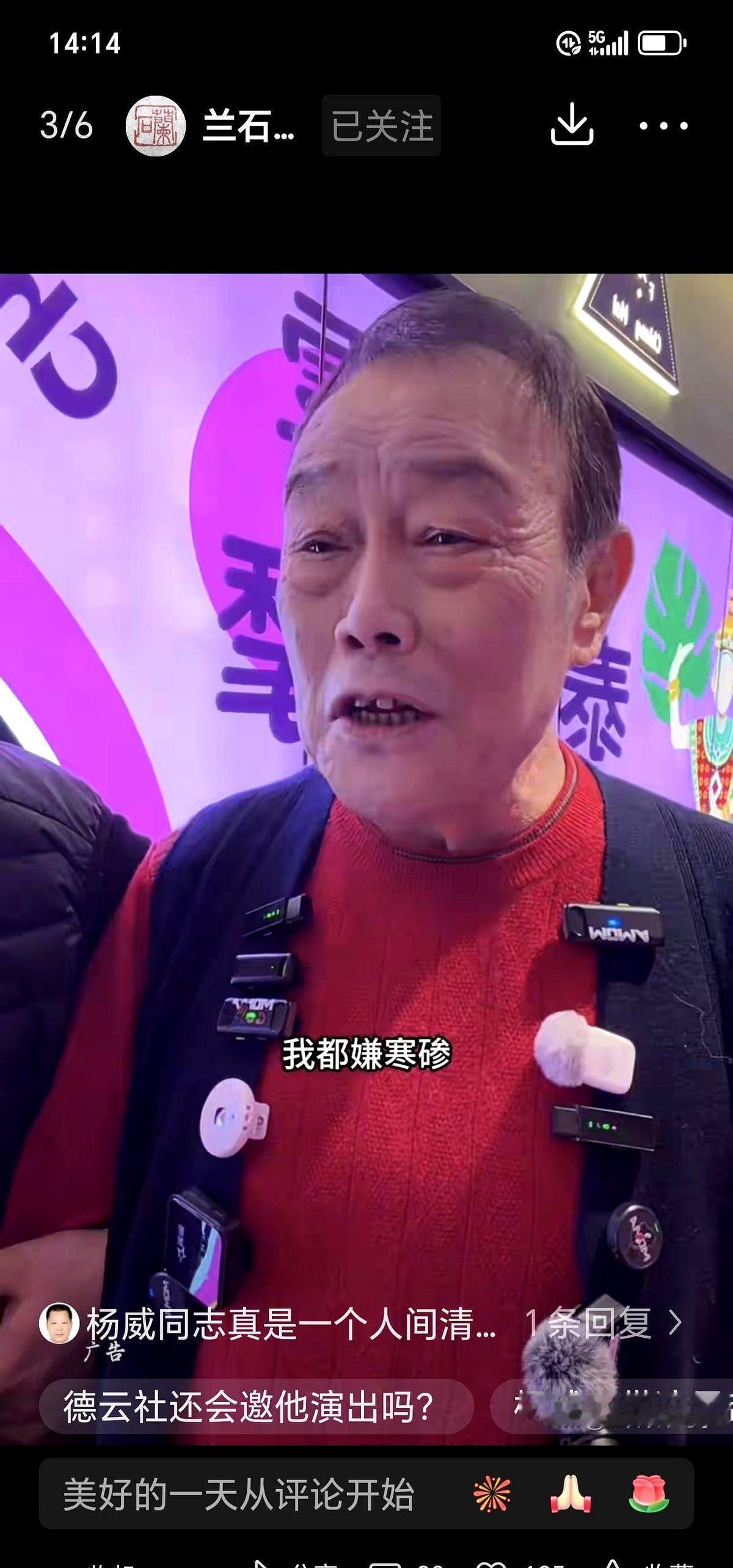 72岁,一夜爆红后,他扭头就把德云社的邀约撕了。 你沒听错,就是杨威,杨少华老爷子的儿子。 纲丝节跟高峰那场搭档,足够让他吃遍江湖饭。 但他第二天就回了天津的小园子,台下就三五位颤巍巍的老观众,他照样把《拴娃娃》的每一个气口、每一个包袱使得滴水不漏。 他说,嗓子是租来的,得还;功夫才是自己的,得守着。 家里是“海青”底子,没正经师承,他反而把活儿看得比命重。 他总说,这行儿最不缺人精,缺的是明白自己几斤几两的“傻子”。 老爷子走的时候,他七十多岁的人哭成泪人,转头抹把脸,还得躬身迎送李金斗、孟凡贵这些叔伯辈。 规矩,是刻在骨头里的。 如今多少人追着流量跑,生怕热度凉了。 他偏不。 不蹭那烫手的热度,不炒那浮夸的名声,只守着一方醒木,把老祖宗传下来的玩意儿,磨得透亮。 时间筛掉的是喧哗,留下的是名字。