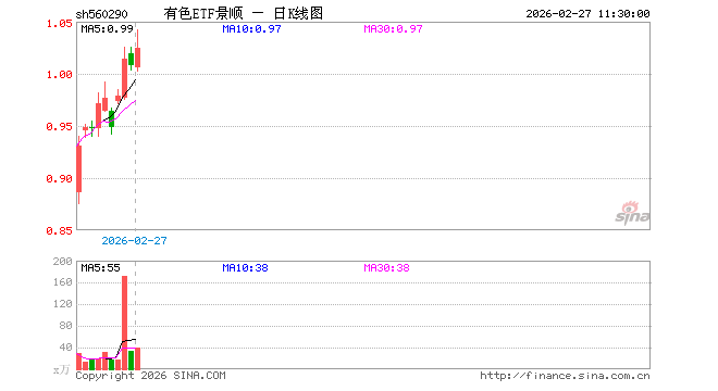 2月27日,截止午间收盘,有色ETF景顺(560290)涨1.59%,报1.024元,成交额4018.13万元。有色ETF景顺(560290)重仓股方面,紫金矿业截止午盘跌0.38%,洛阳钼业涨1.87%,北方稀土涨3.98%,中国铝业涨0.52%,华友钴业涨0.39%,中金黄金涨0.77%,山东黄金涨0.73%,兴业银锡涨1.30%,赣锋锂业跌0.34%,铜陵有色涨1.19%。