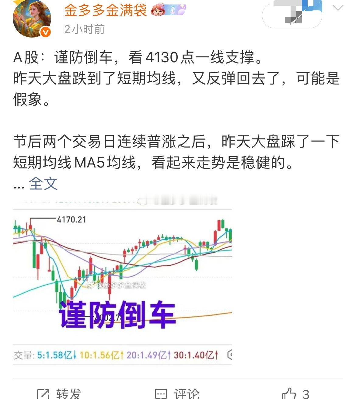 A股:如果两天提示大盘倒车风险,都没能让友友们引起重视,那金姐也是爱莫能助了。大盘精准跌到了4130点区域。
