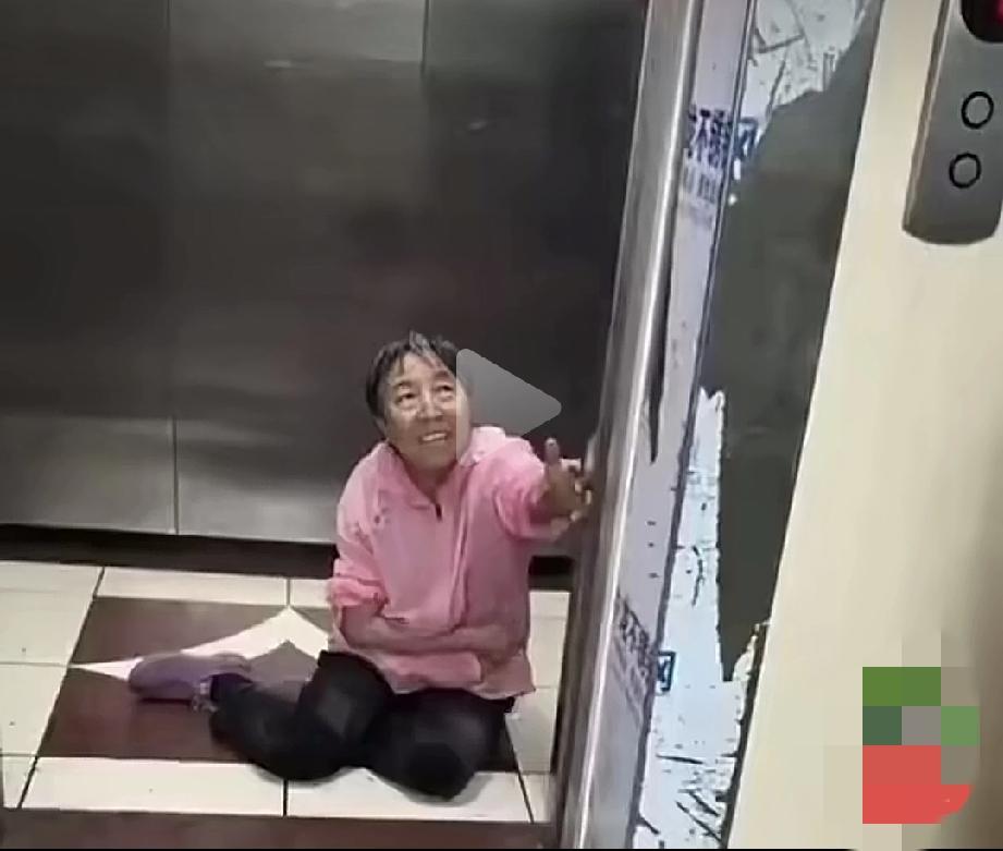 “行行好,拉我一把”,一个老人在电梯内跌倒了,她无力站起来,她向外求助,她伸出了
