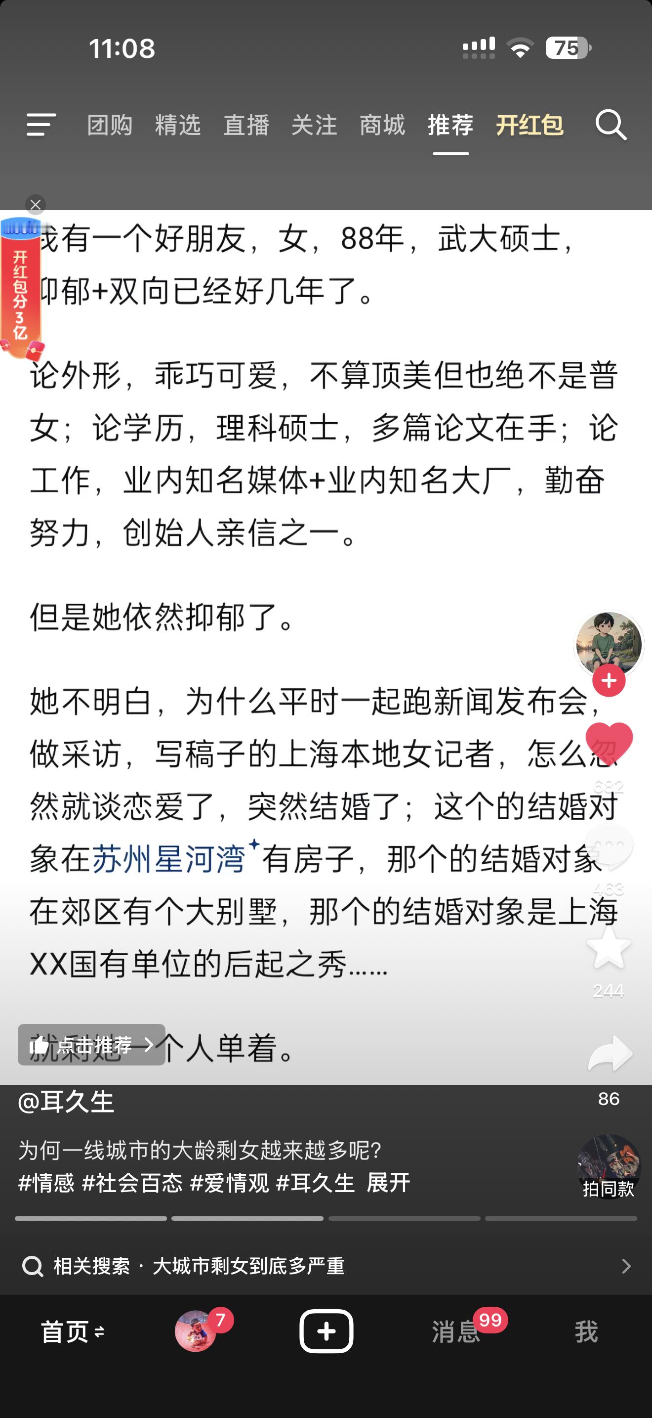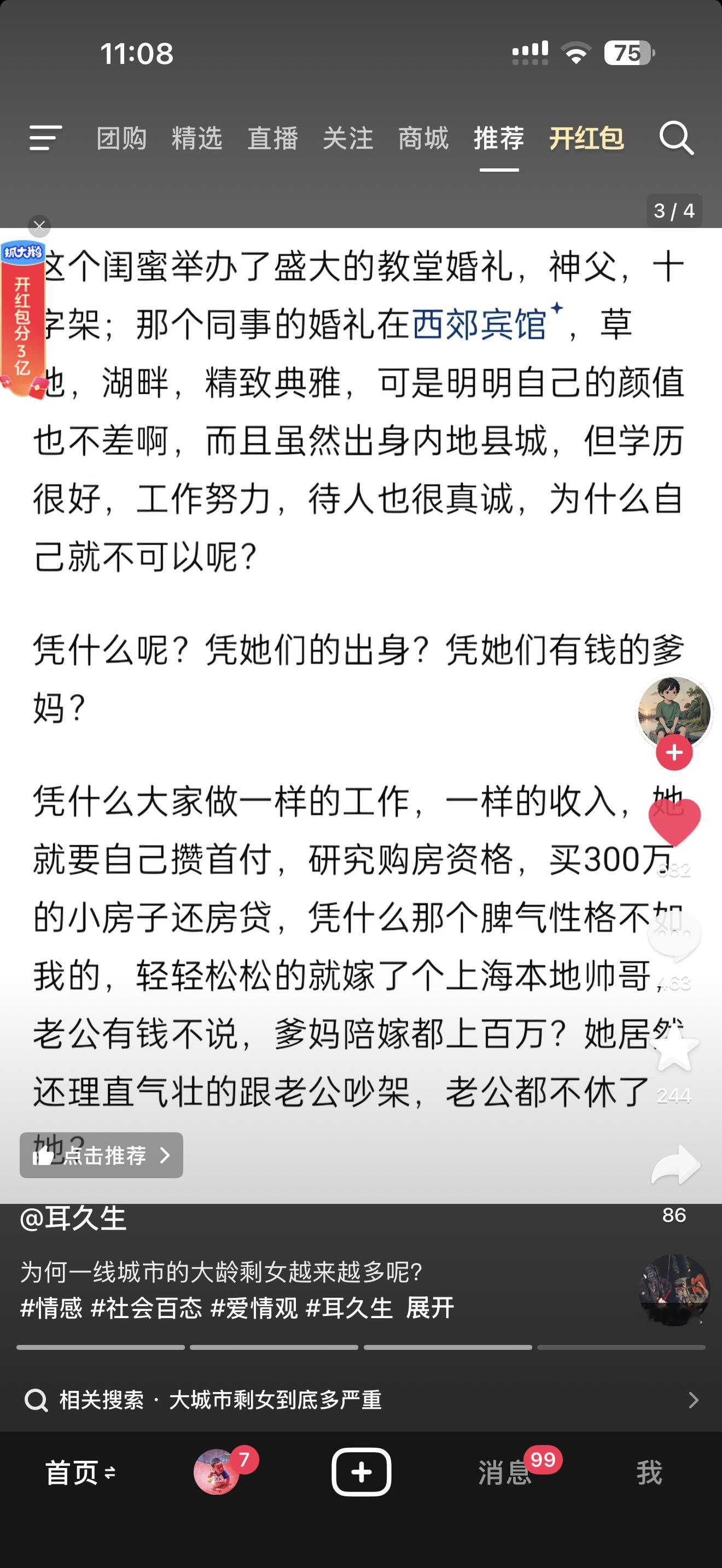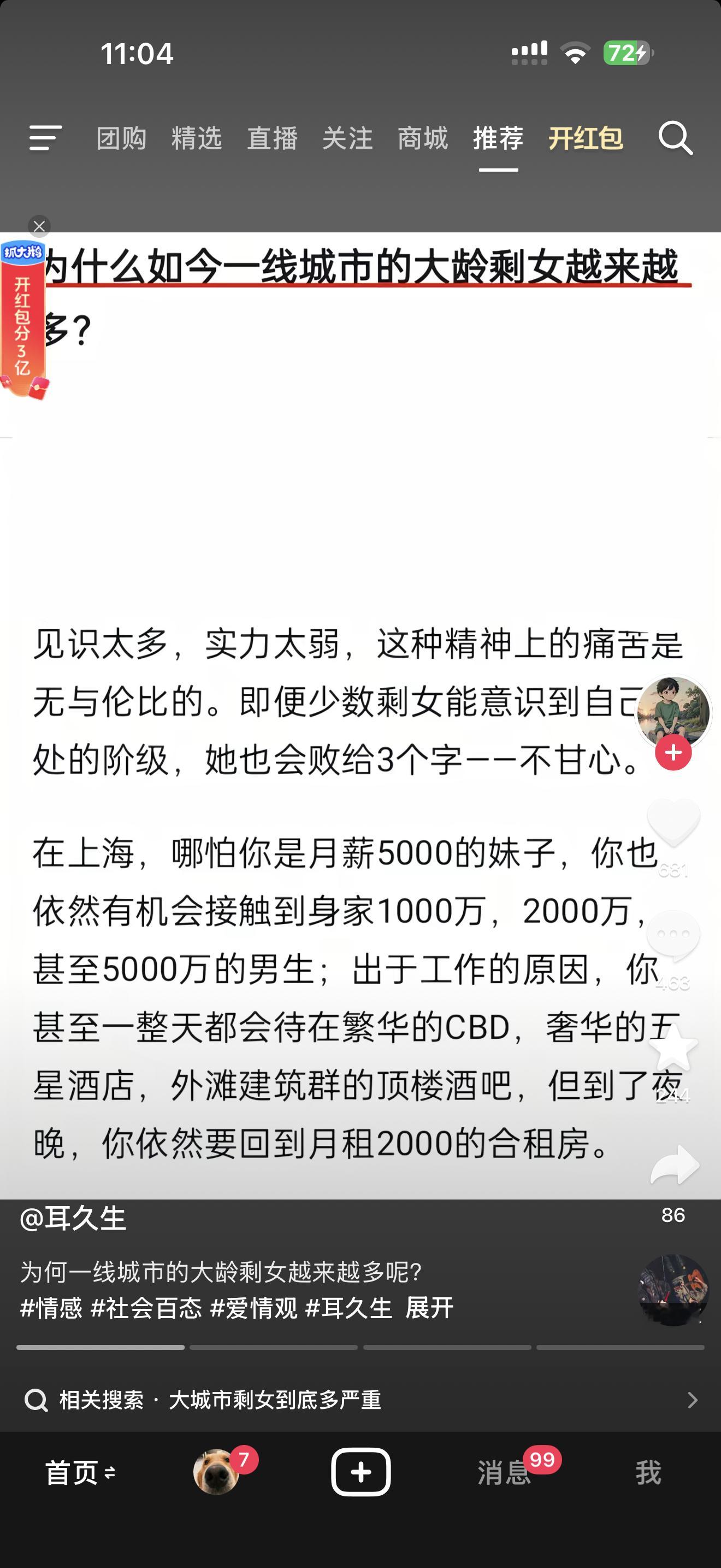 今天举报了一个短视频,影响结婚率,生育率的。这个也许是在批判错误价值观,但是也客