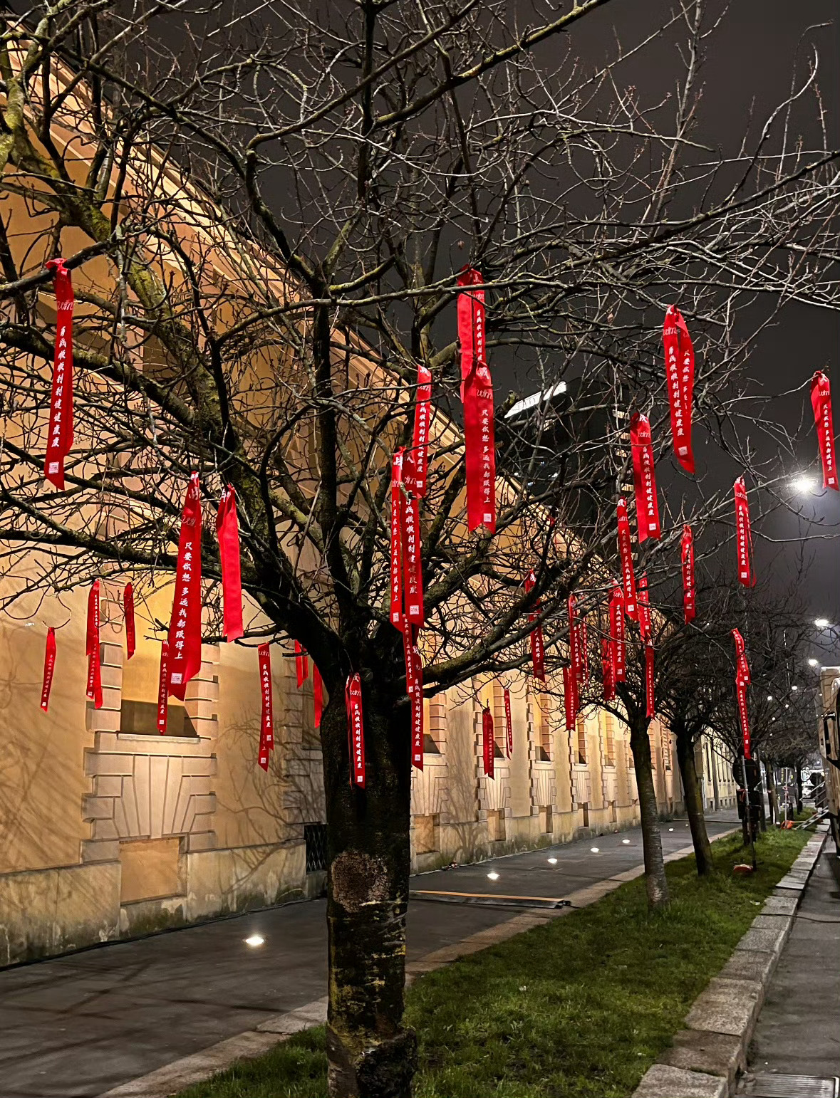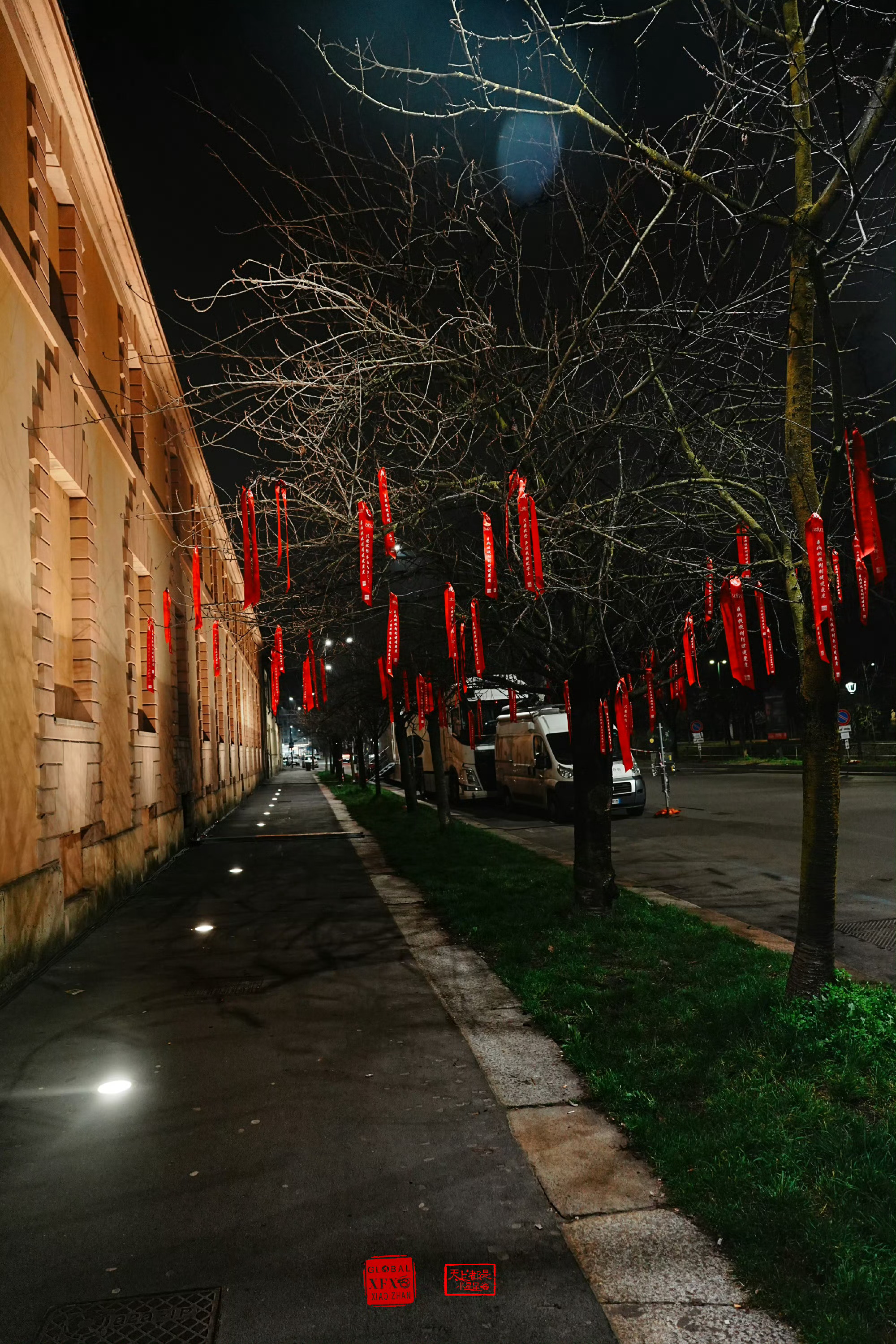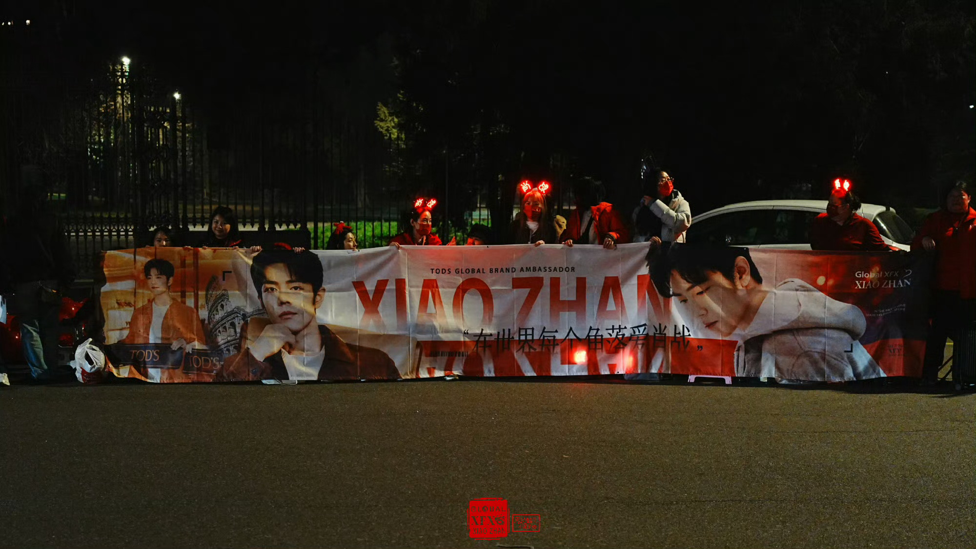 肖战米兰线下应援 肖战米兰线下应援🈶海外小飞侠夜拍,用红色气球、横幅和祝福组成