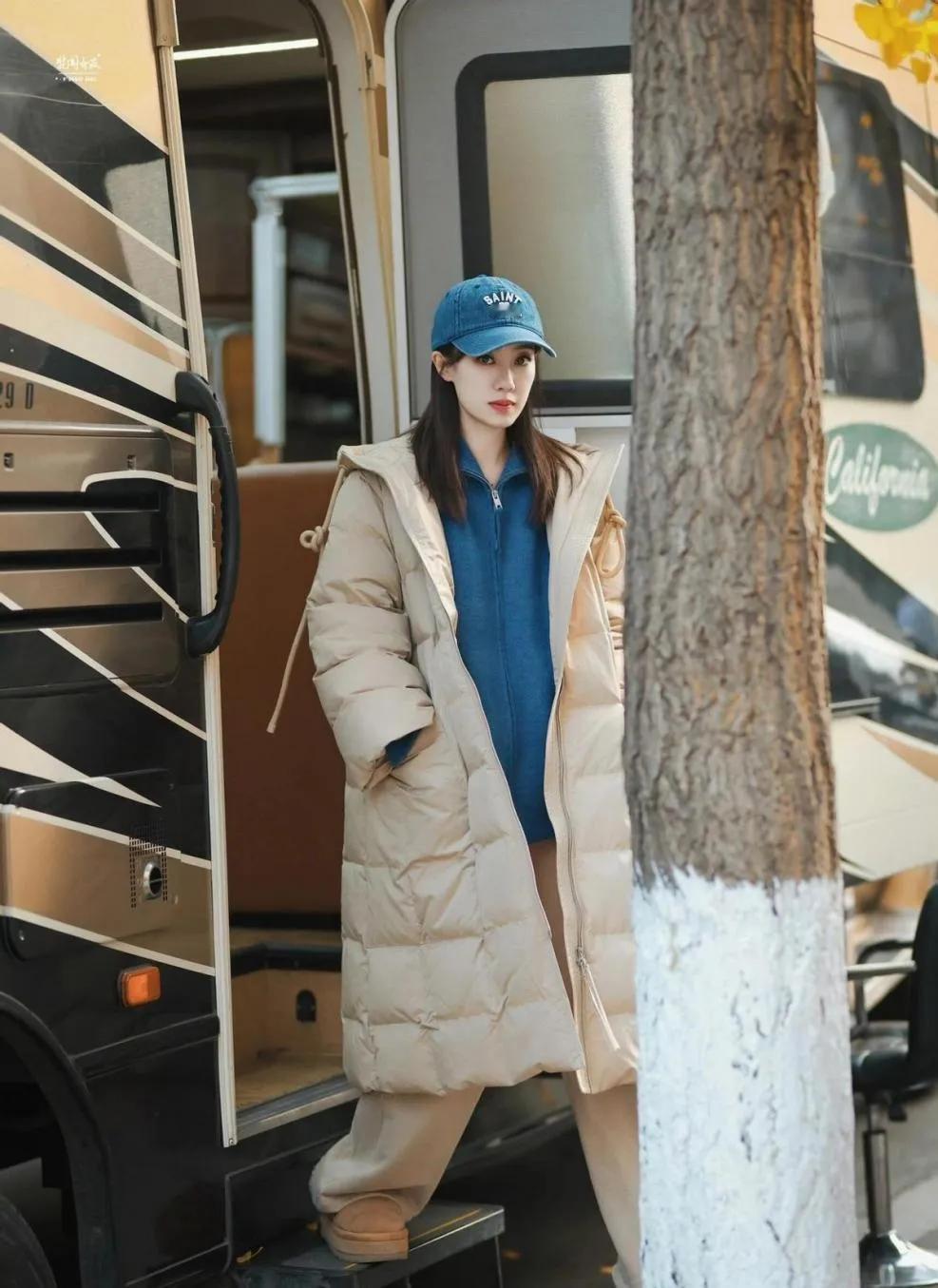 张小斐羽绒服穿搭太会了! 别再硬配牛仔裤+短靴了,学学她这几套👇 米色