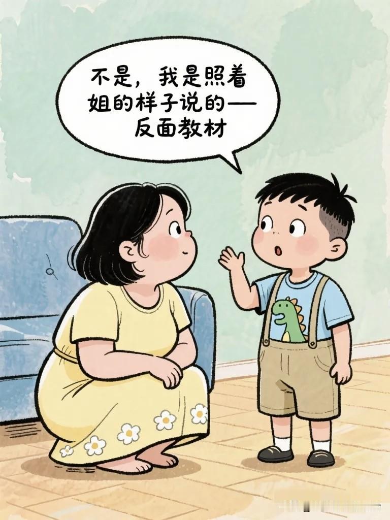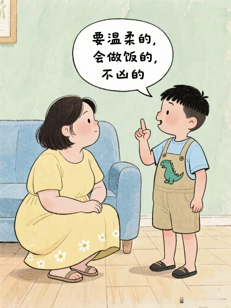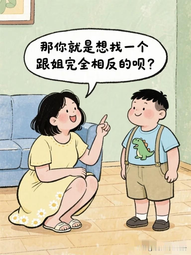 搞笑漫画:姐姐问弟弟:“你长大了想娶什么样的老婆?” 弟弟认真想了想:“要温柔的,会做饭的,不凶的。” 姐姐笑了……