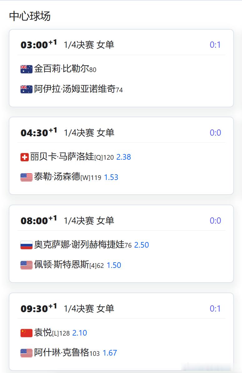 WTA250奥斯汀袁悦VS克鲁格 10:00 【预估比赛时间】