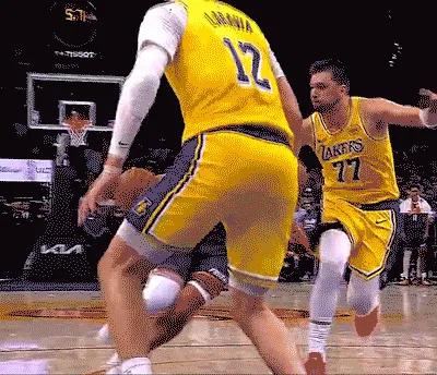 被绝杀这球,詹姆斯补帽是否添乱? 这球太阳一群小个摆明投3分,阿伦持球突破有东契奇贴防,正面也有拉拉维亚协防封堵他上篮路线。明显无法上篮(图2),只剩下传左底角一个线路,结果呢? 詹姆斯放掉自己人非要隔着队友来帽,反而把东契奇给踹飞,哈哈。 里夫斯必须得补,但内线3人2人倒地,太阳再一转移拉拉维亚根本来不及。 PS:太阳暂停为啥不换下东契奇、詹姆斯上防守阵容?