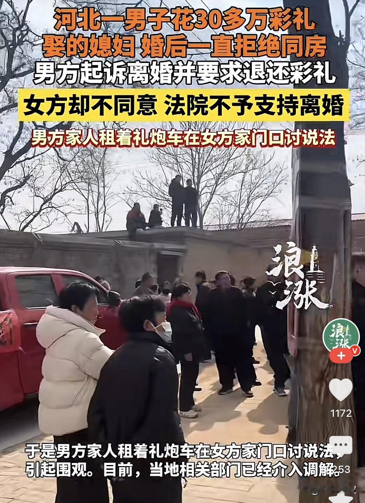 河北邢台,一男子花了30多万彩礼娶的媳妇,因婚后媳妇拒绝同房,穿着衣服睡觉引发男方不满,男方随即提出了离婚,并要求女方退还彩礼以及五金,然而,女方却表示双方有感情不愿意离婚,最终法院判决两人不准离婚,男方无语,随后租来了礼炮车来到女方家门口讨说法。 视频中,一女子站在红色的礼炮车上大喊,来俺家十个月了,晚上睡觉不脱衣服,内衣都不带换的,也不过,人家也不退钱,也不跟你离。 据悉,男方花费30多万彩礼娶的媳妇,婚后媳妇拒绝和男方同房,相处十个月之后男方彻底失望,于是便提起了离婚诉讼,要求离婚的同时,一并要求女方退还彩礼以及五金。 但是,女方表示双方感情未破裂,不同意离婚,因男方证据不足,法院并未判决双方离婚。 事发后,男方家人坐不住了,随后便租来了礼炮车来到女方家门口,要求女方家给一个说法,目前,当地有关部门已经介入协调。 事发后,网友纷纷表示,这个彩礼就应该取消,本来结婚对男方的压力就很大,再让男方额外付出几十万,真的愿意结婚的男性只会越来越少。 还有网友表示,为什么不判决离婚?谁在家里睡觉之前还给媳妇拍穿着衣服睡觉的视频?而且还是天天拍,这也不符合常理。 也有网友说,其实,女方就没打算和男方结婚,也许是女方家里需要这笔彩礼,在女方不愿意的情况下,把女方嫁过去,女方为了清白只能这么做。 其实,无论如何,结婚的前提是,双方要有感情,这种感情如果不存在,那么,结婚也没有任何意义了。 本案中,既然男方提起了离婚诉求,即认为双方的感情已经破裂,其实,民法典规定的很清楚,只有这几种情况起诉离婚的,在调解无望的情况下,才能够判决离婚。 即有下列情形之一,调解无效的,应当准予离婚:(一)重婚或者与他人同居;(二)实施家庭暴力或者虐待、遗弃家庭成员;(三)有赌博、吸毒等恶习屡教不改;(四)因感情不和分居满二年;(五)其他导致夫妻感情破裂的情形。 本案中,两人结婚时间短,男方据此以女方不愿意同房为由提出离婚,其实是需要举证证明的,因为按照上述情形,只有第五种情况下,男方离婚的诉求才有可能被支持的。 所以,男方需要证明女方长期不愿意和自己同房,在这种情况下,才算是感情破裂,如果男方径直起诉却没有证据,自然不会得到支持,尤其是在协议离婚都有30天的冷静期的情况下,想要通过起诉达到快速离婚的还是有相当难度的。 当然,如果离婚诉求能够得到支持,因为涉及到30万的彩礼,这不是小数目,而且,按照关于彩礼的司法解释的规定,第五条 双方已办理结婚登记且共同生活,离婚时一方请求返还按照习俗给付的彩礼的,人民法院一般不予支持。但是,如果共同生活时间较短且彩礼数额过高的,人民法院可以根据彩礼实际使用及嫁妆情况,综合考虑彩礼数额、共同生活及孕育情况、双方过错等事实,结合当地习俗,确定是否返还以及返还的具体比例。 即双方已经结婚,退彩礼原则上是不予支持的,但是女方不愿意同房,加上彩礼数额较高,那么,法院还是会酌情让女方退还一部分。 当然,如果婚没有离成,男方再次起诉只能等6个月之后了,那么6个月之后,双方结婚的时间又从10个月变成了一年4个月,婚姻的存续时间长了,退还的比例肯定是要比10个月要低了。 既然不愿意和男方结婚,就没必要搞这么一出,你以为人家给了30万的彩礼,你拖着人家之后找个理由离婚,就能吃下这30万吗,殊不知搞不好被认定为诈骗,那就惨了。 对此,你对本案有什么看法? —————————— 关注我,带你评析法律热点,关注冷暖人生。 文章原创,抄袭必究 头号创作者激励计划 30万娶亲后同房遭拒 男子欲离婚被驳