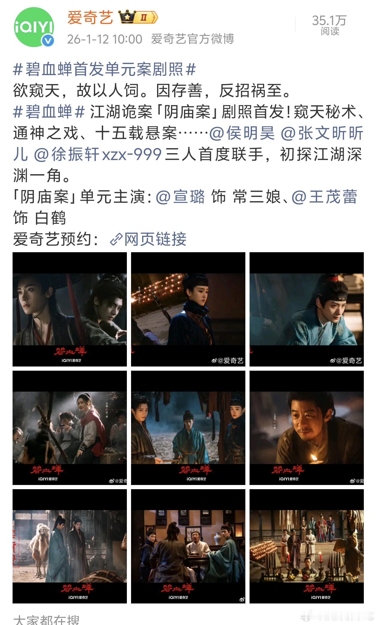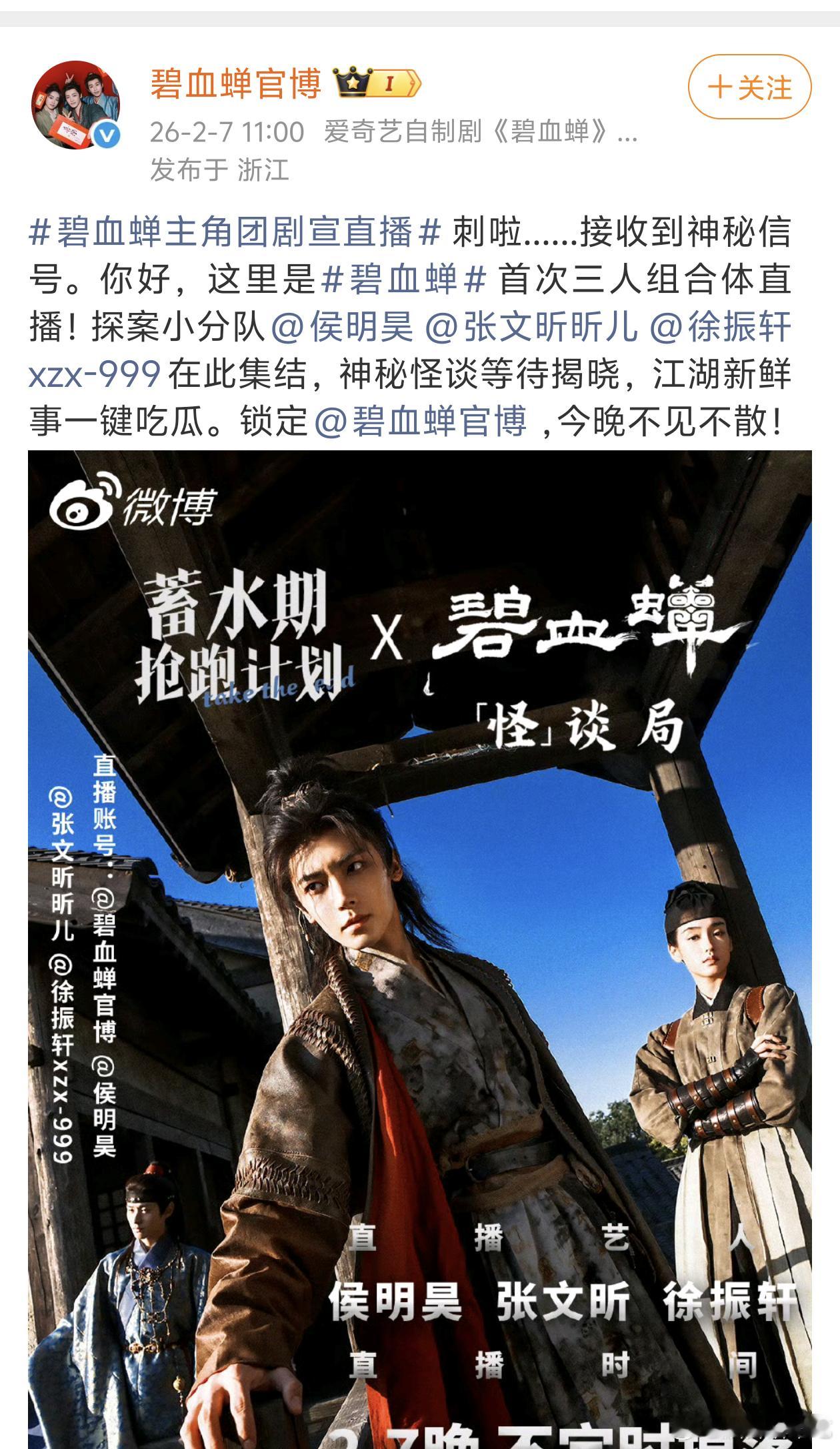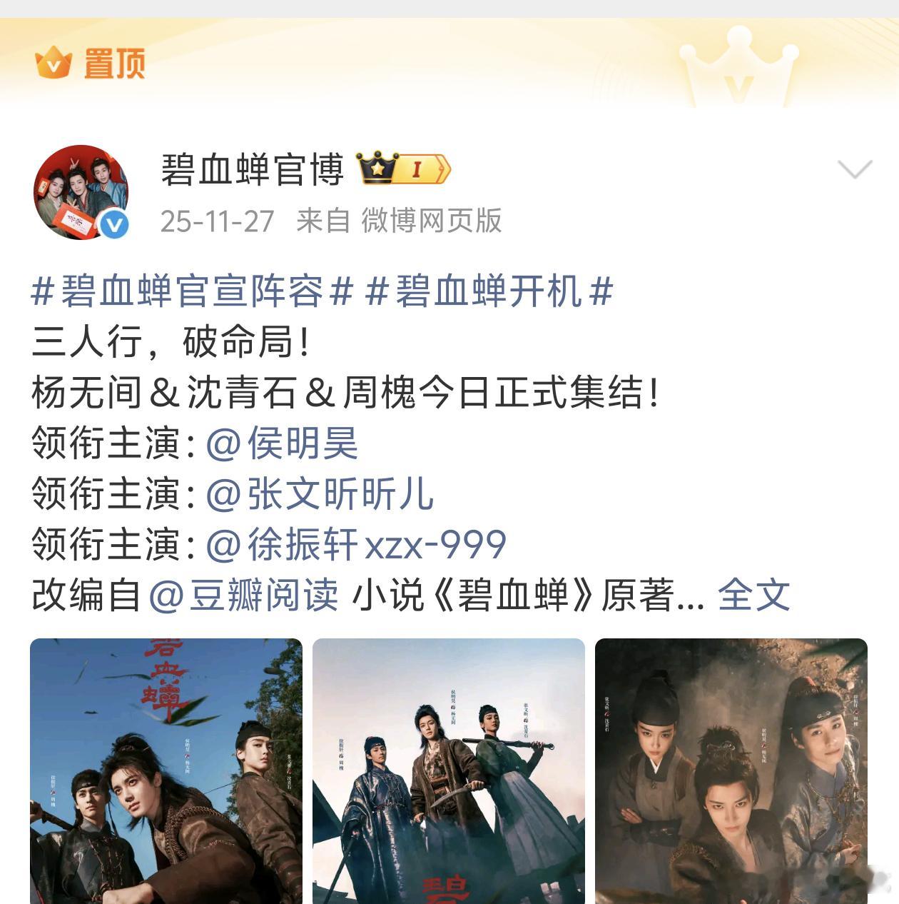 碧血蝉从开拍就宣传的三人行,官博头像都是三人行……